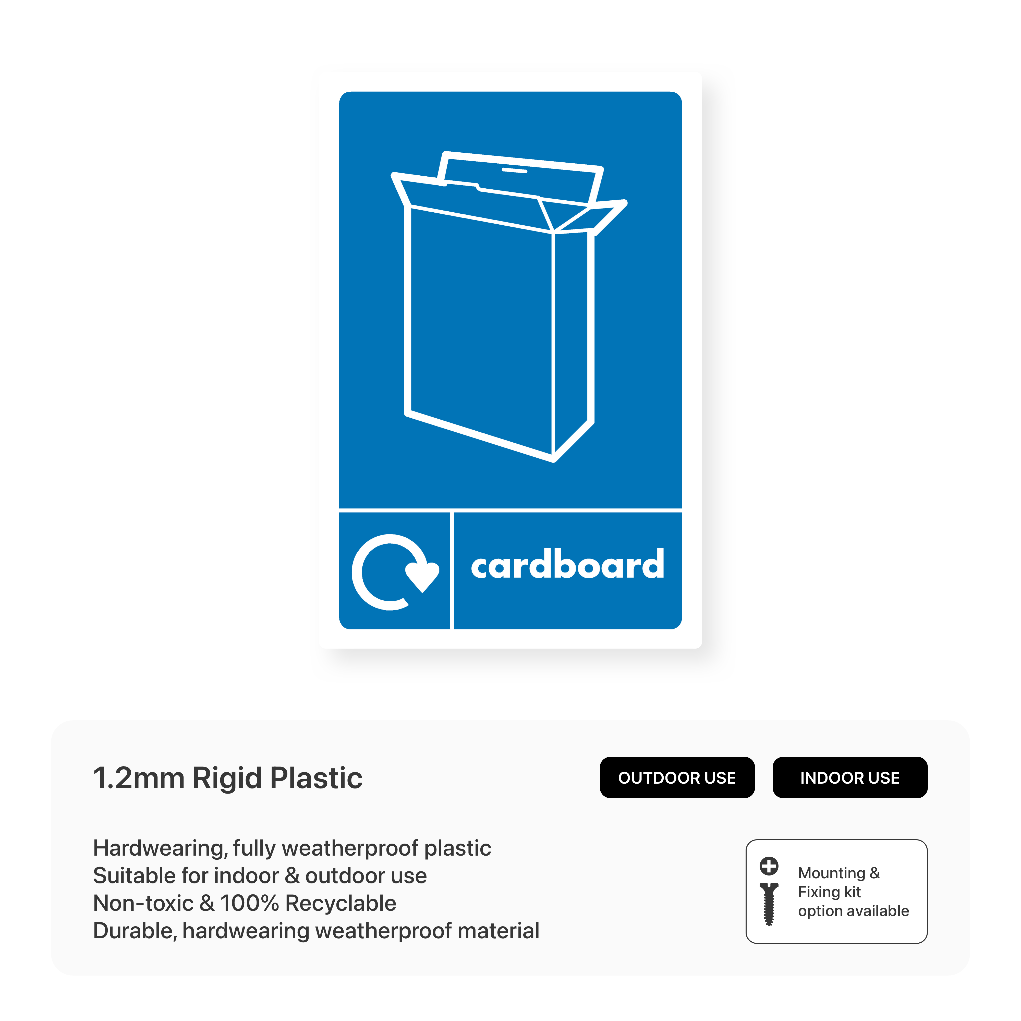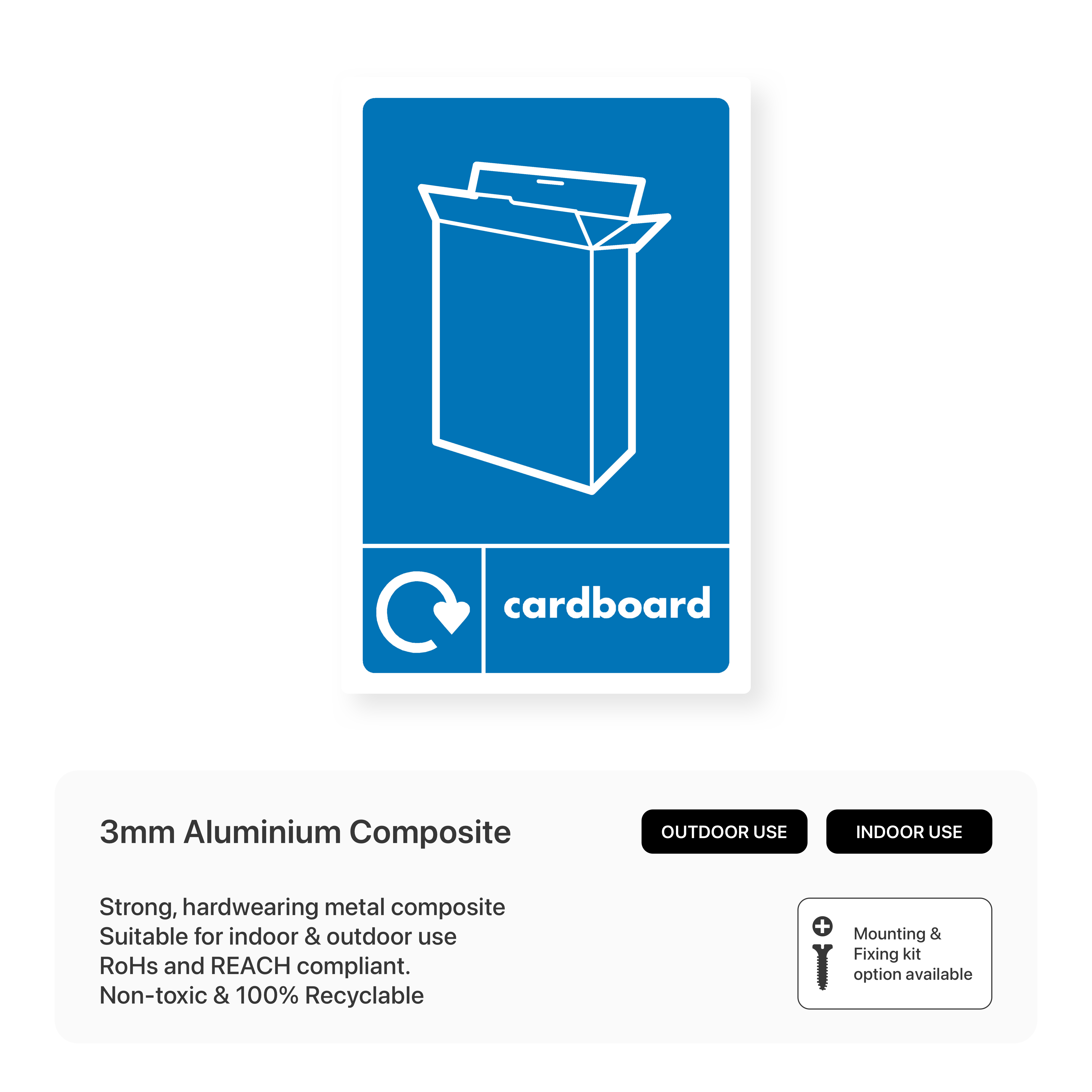 Cardboard - Portrait - Recycling: Promote recycling of cardboard with this portrait-oriented informative sign. Help reduce waste and conserve resources by directing cardboard to the correct recycling bins.