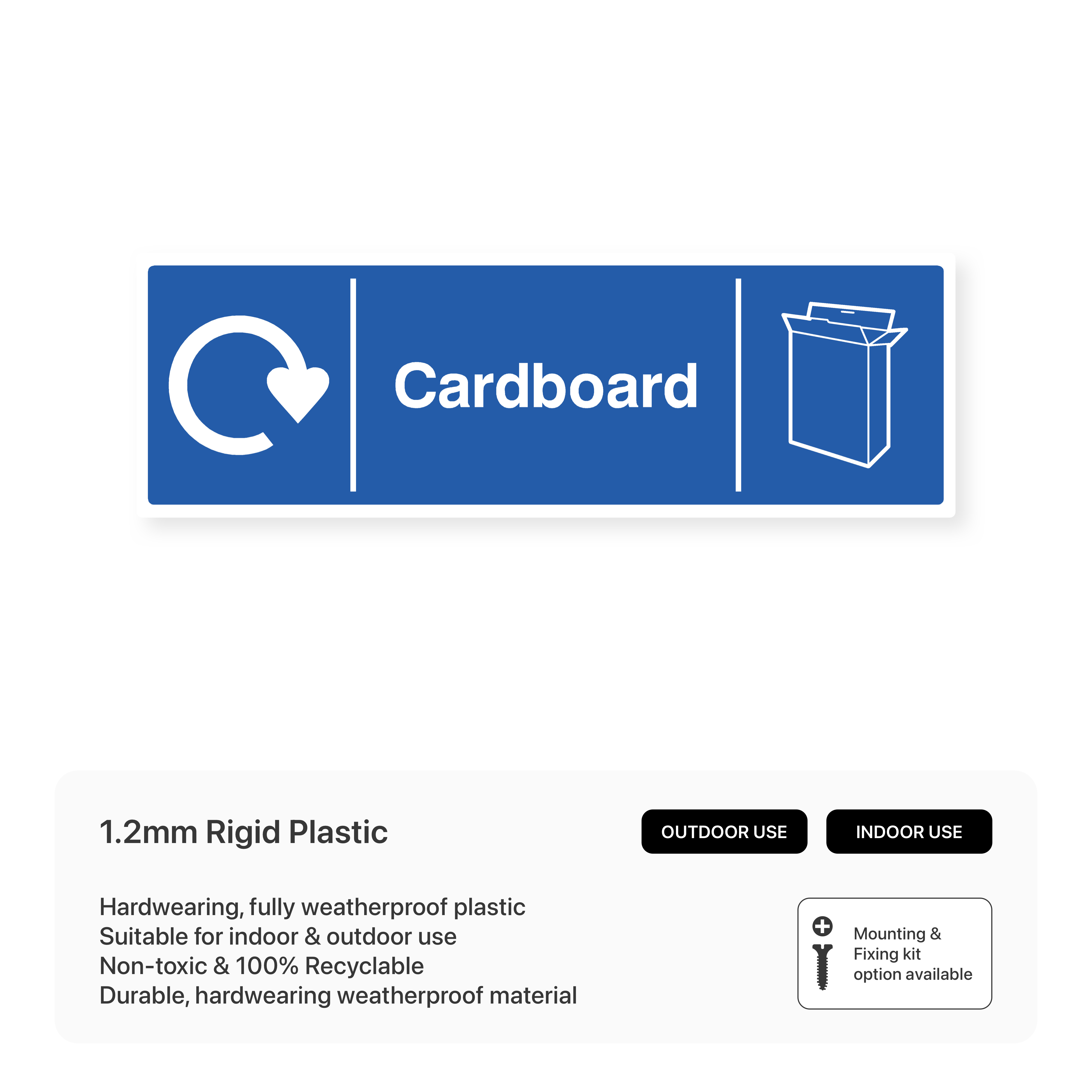 Cardboard - Recycling: Promote recycling of cardboard with this informative sign. Help reduce waste and conserve resources by directing cardboard to the correct recycling bins.