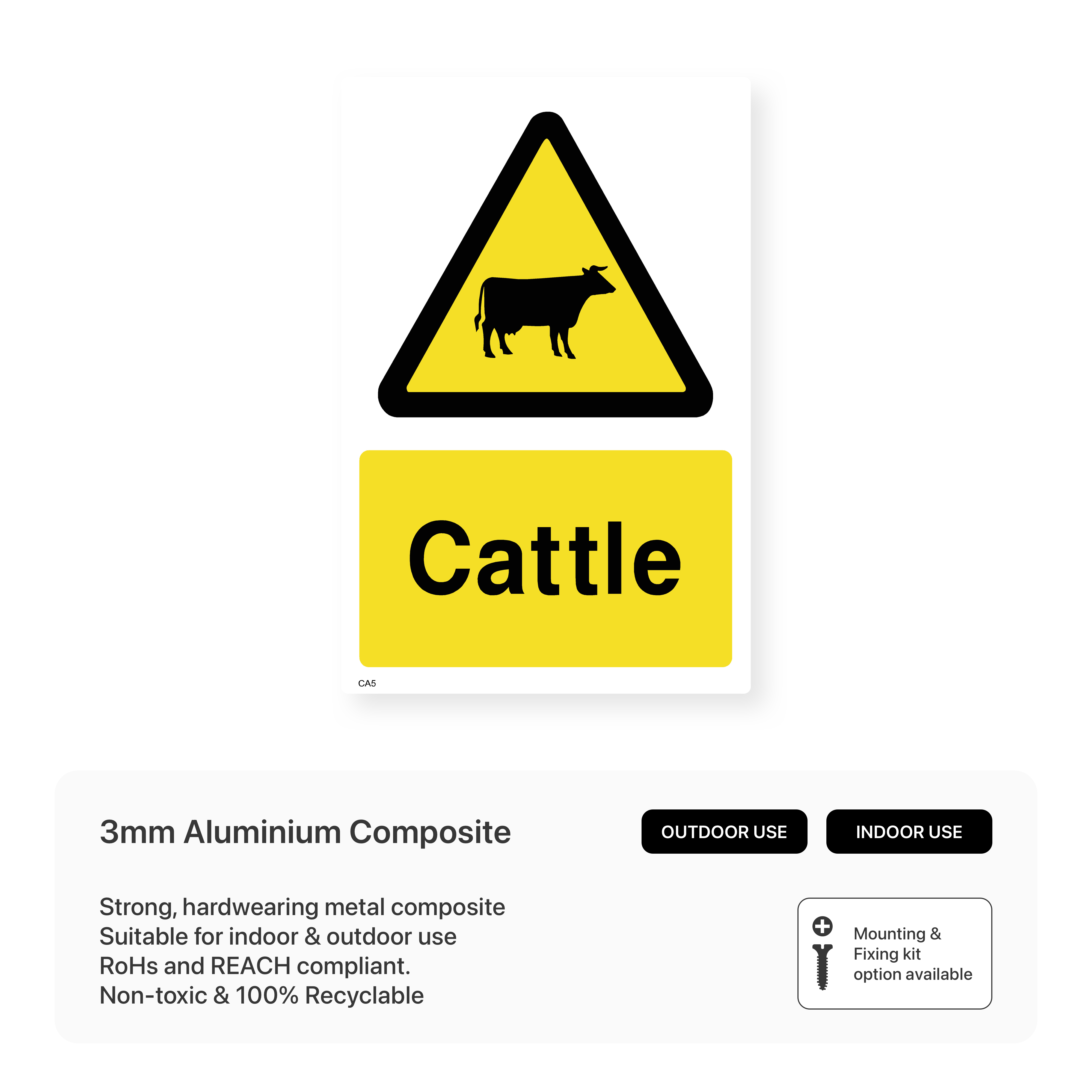 Warn individuals about the presence of cattle in fields or on paths. These durable signs, offered in various sizes and materials, help prevent unexpected encounters and ensure the safety of both animals and people.