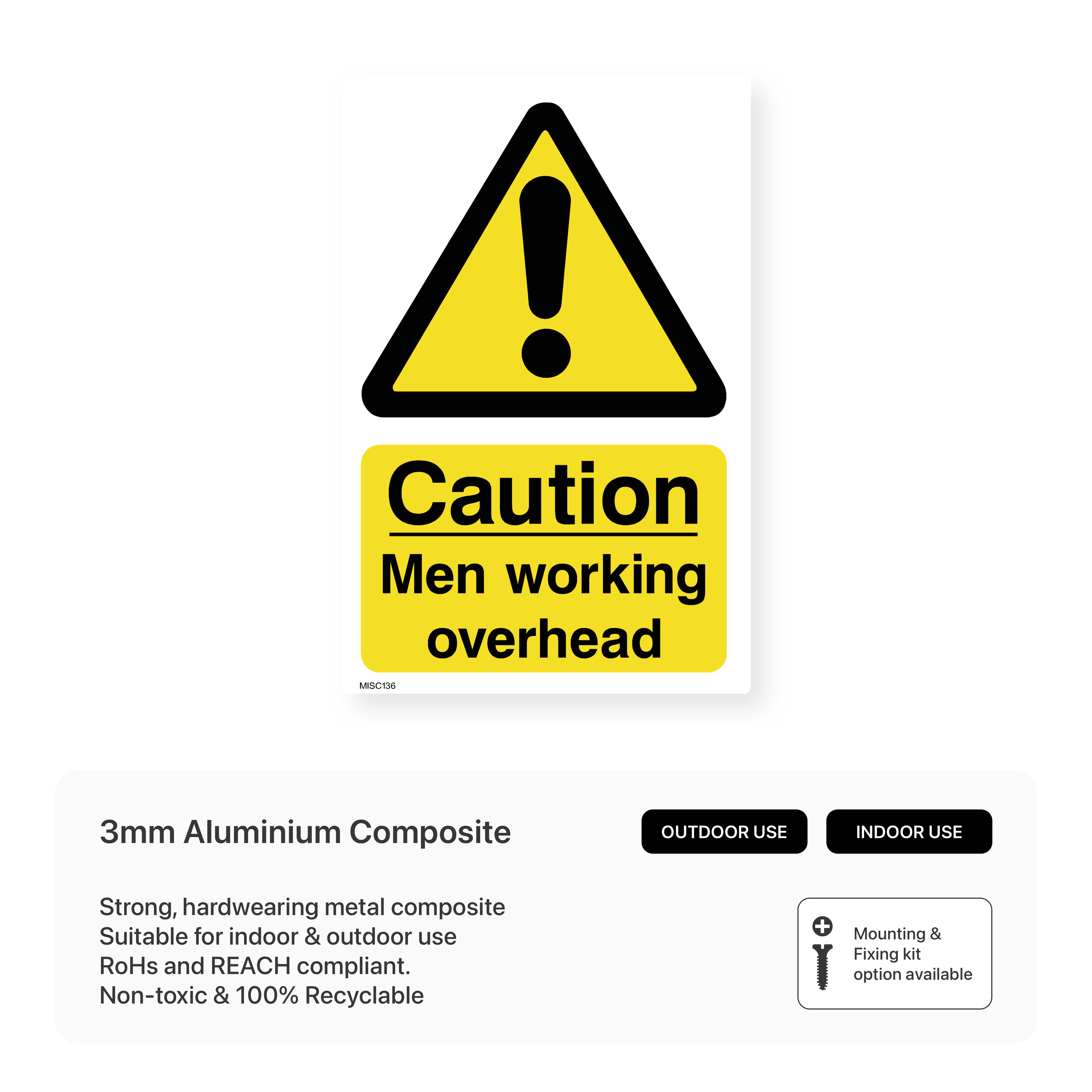 Warn of overhead work and prevent accidents with our "Caution Men Working Overhead" signs. Clearly communicate the potential hazard to those passing below.