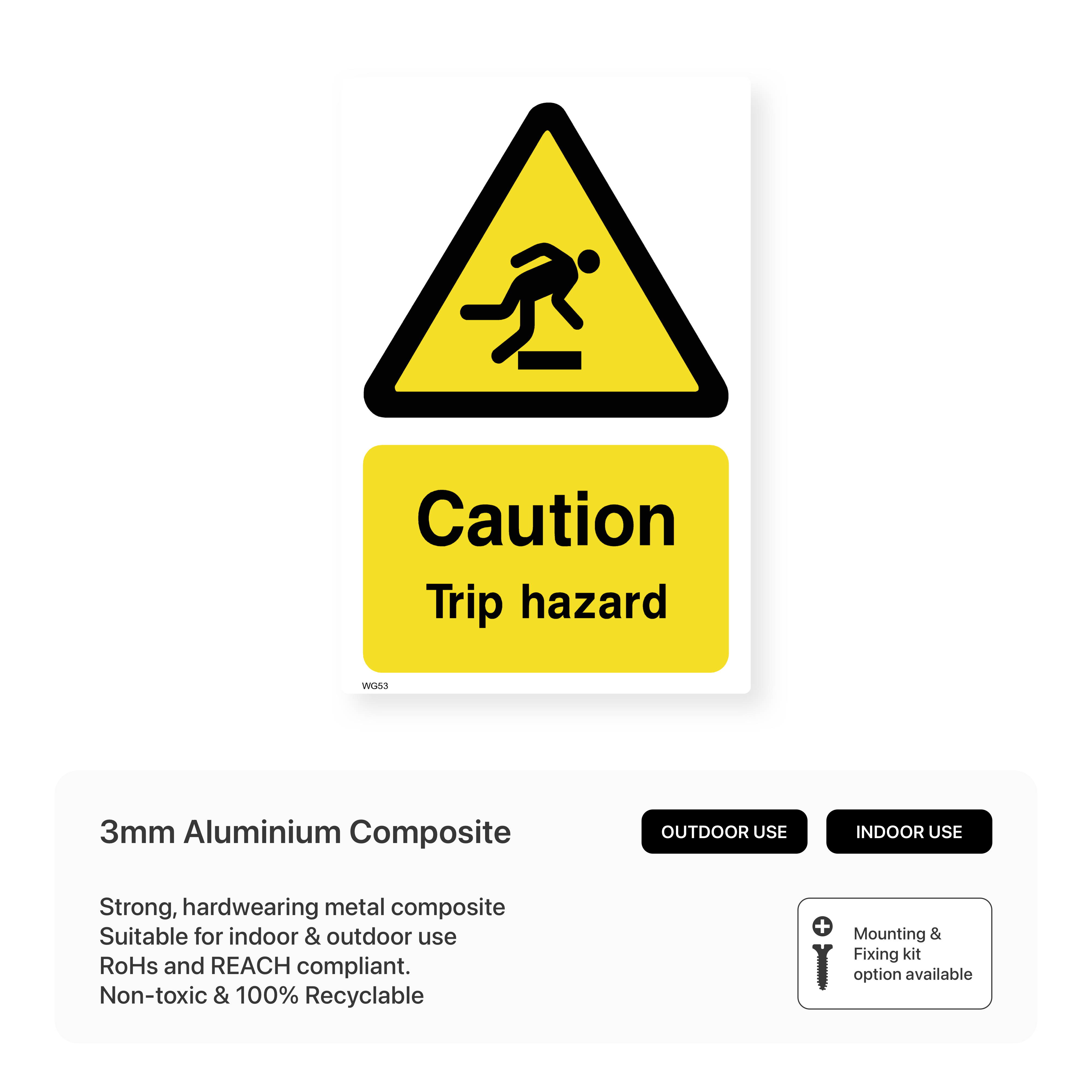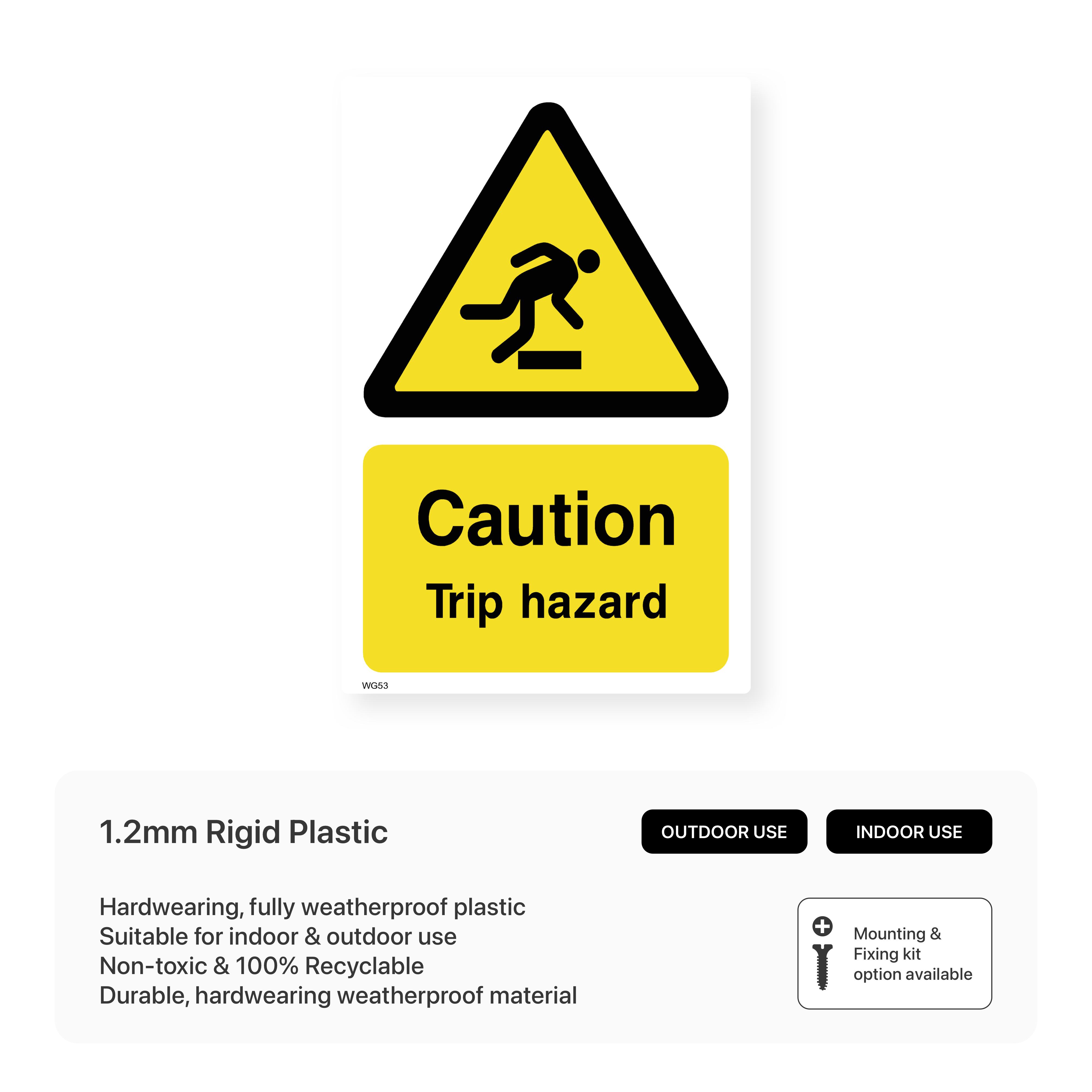 Prevent trips and falls in your workplace with our highly visible "Caution - Trip Hazard" sign. This durable sign effectively alerts individuals to potential tripping hazards, reducing the risk of accidents.