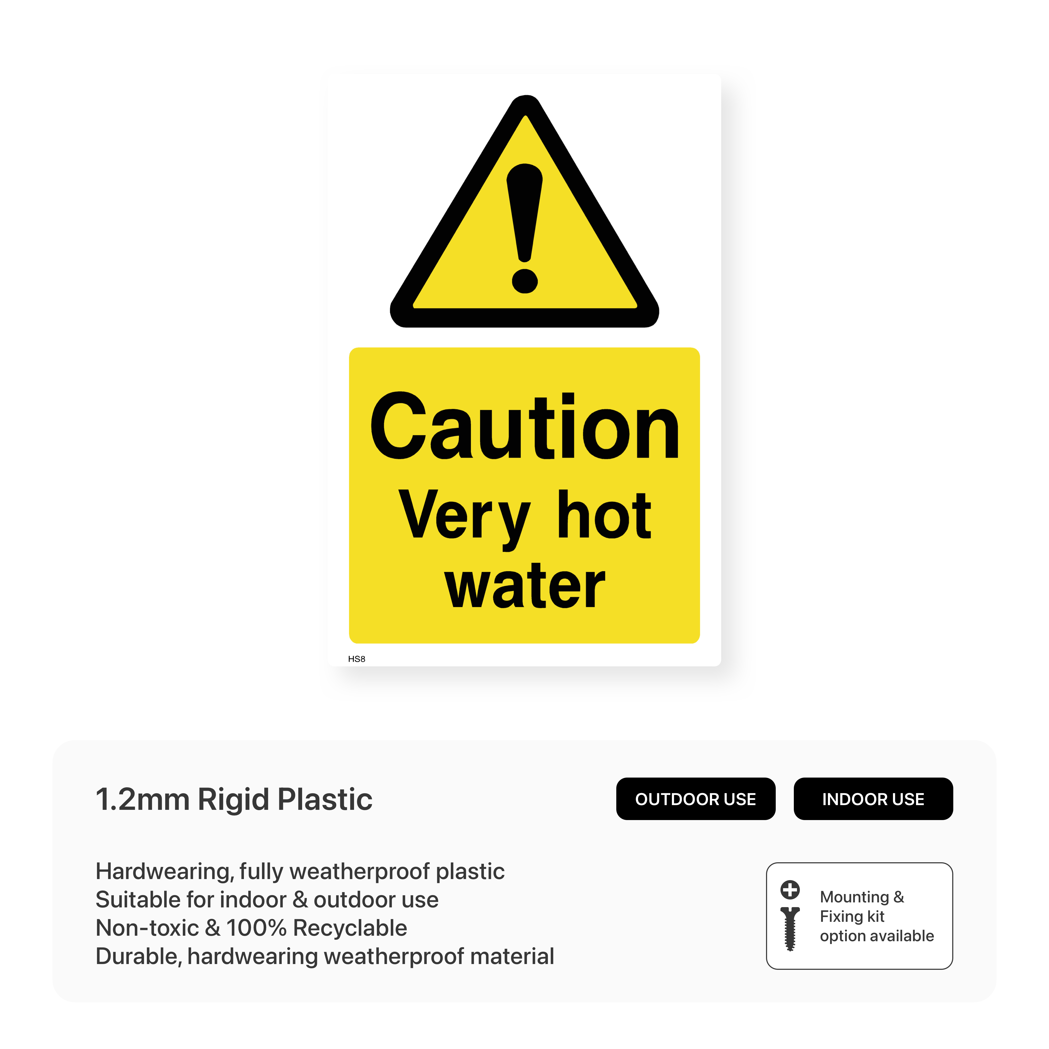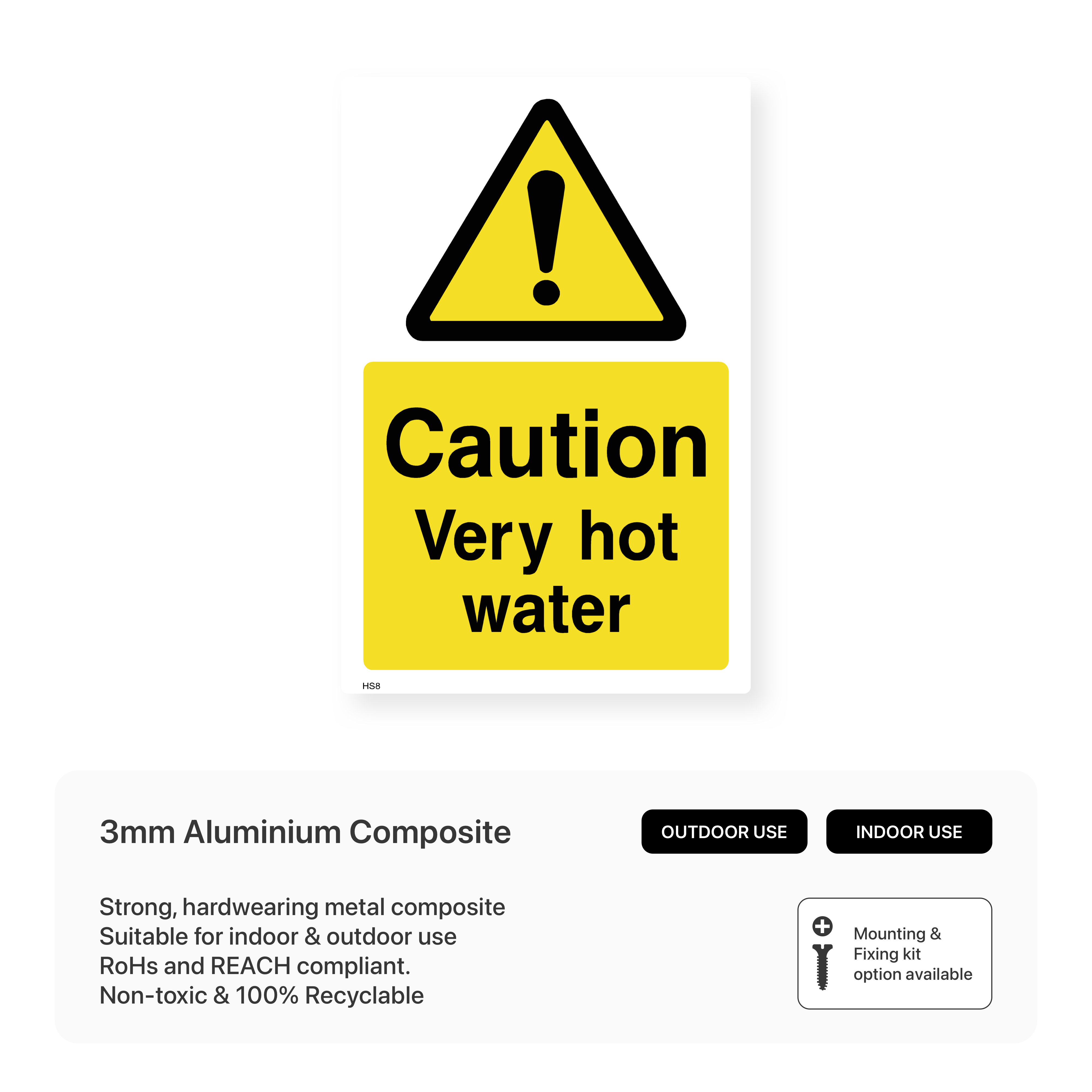 Prevent burns and scalding with our "Caution - Very hot water" sign. This sign clearly warns guests of very hot water temperatures, promoting caution and preventing injuries in bathrooms and showers.