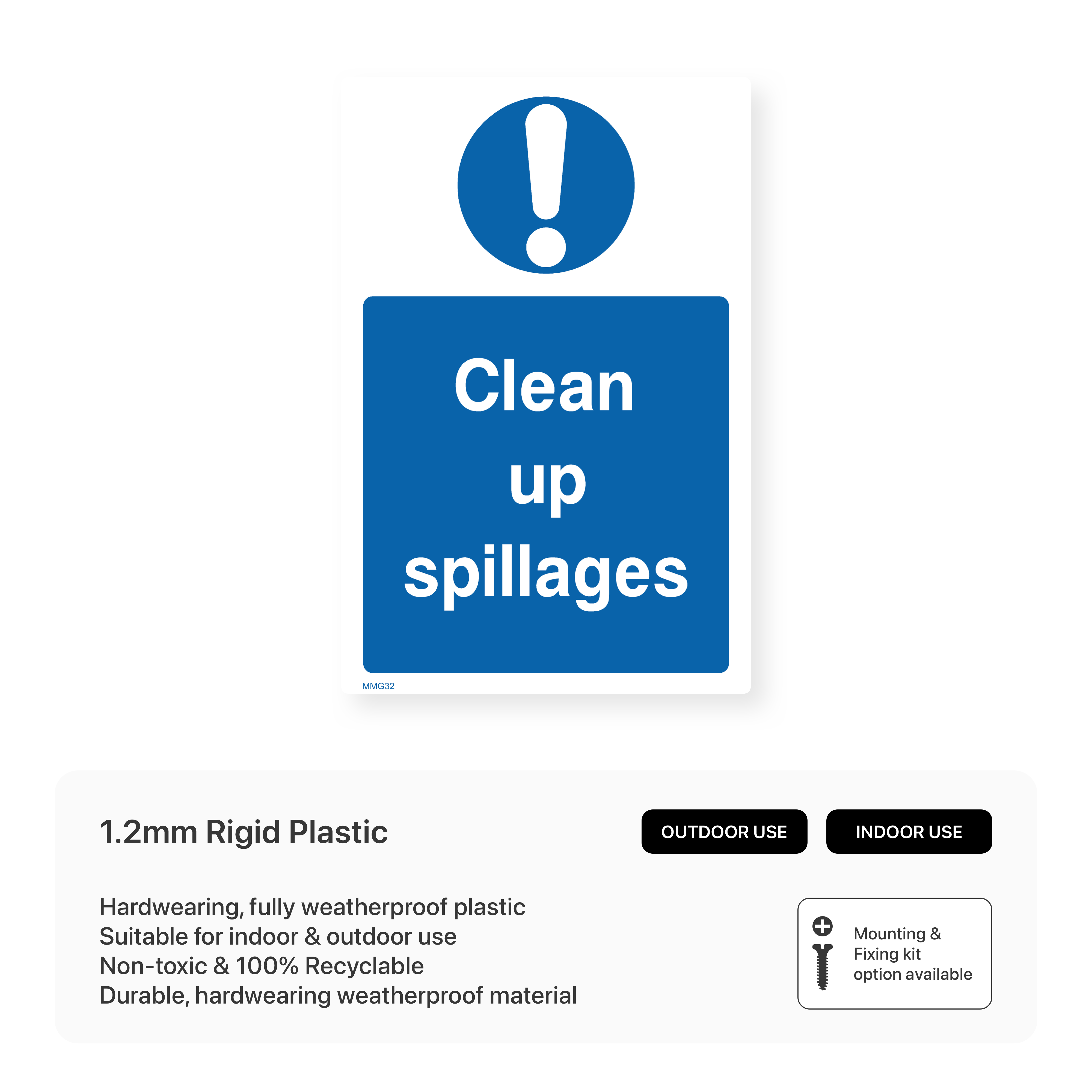 Maintain a safe and clean environment with our "Clean Up Spillages" signs. Remind staff and visitors to promptly clean up spills to prevent slips and falls.
