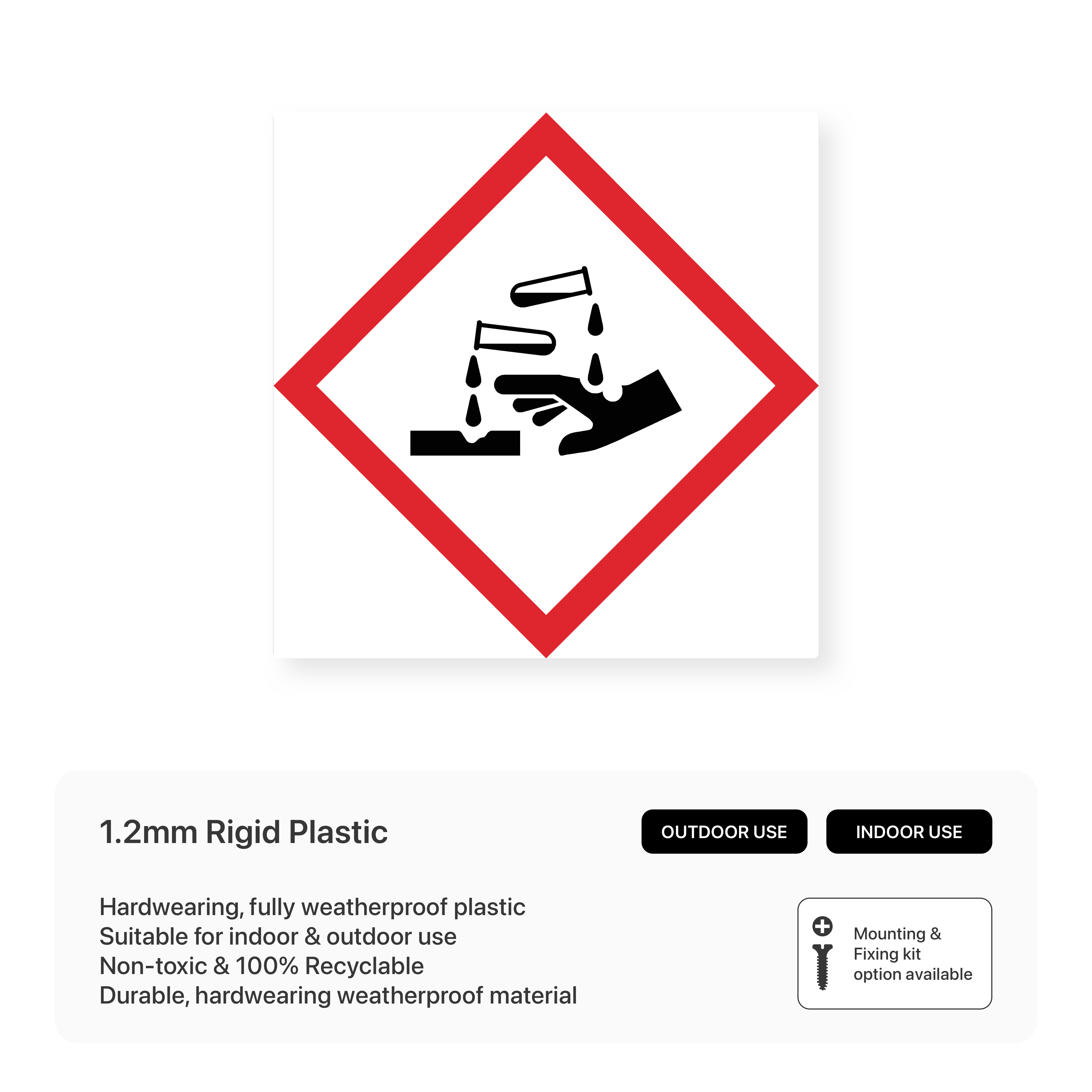 Clearly identify corrosive substances with our "Corrosive Hazard GHS Symbol" sign. This globally recognized symbol effectively communicates the corrosive nature of hazardous materials, ensuring proper handling and storage.
