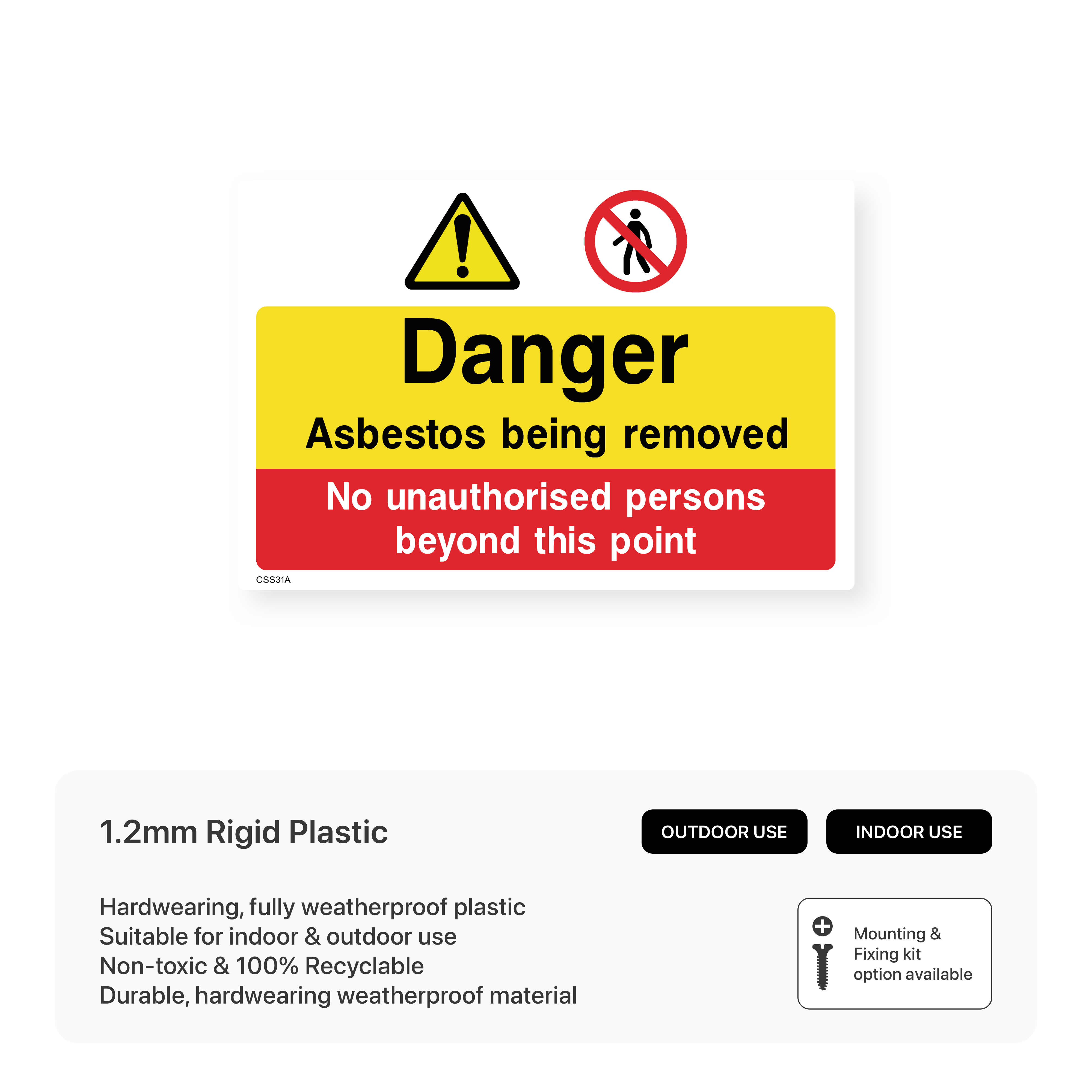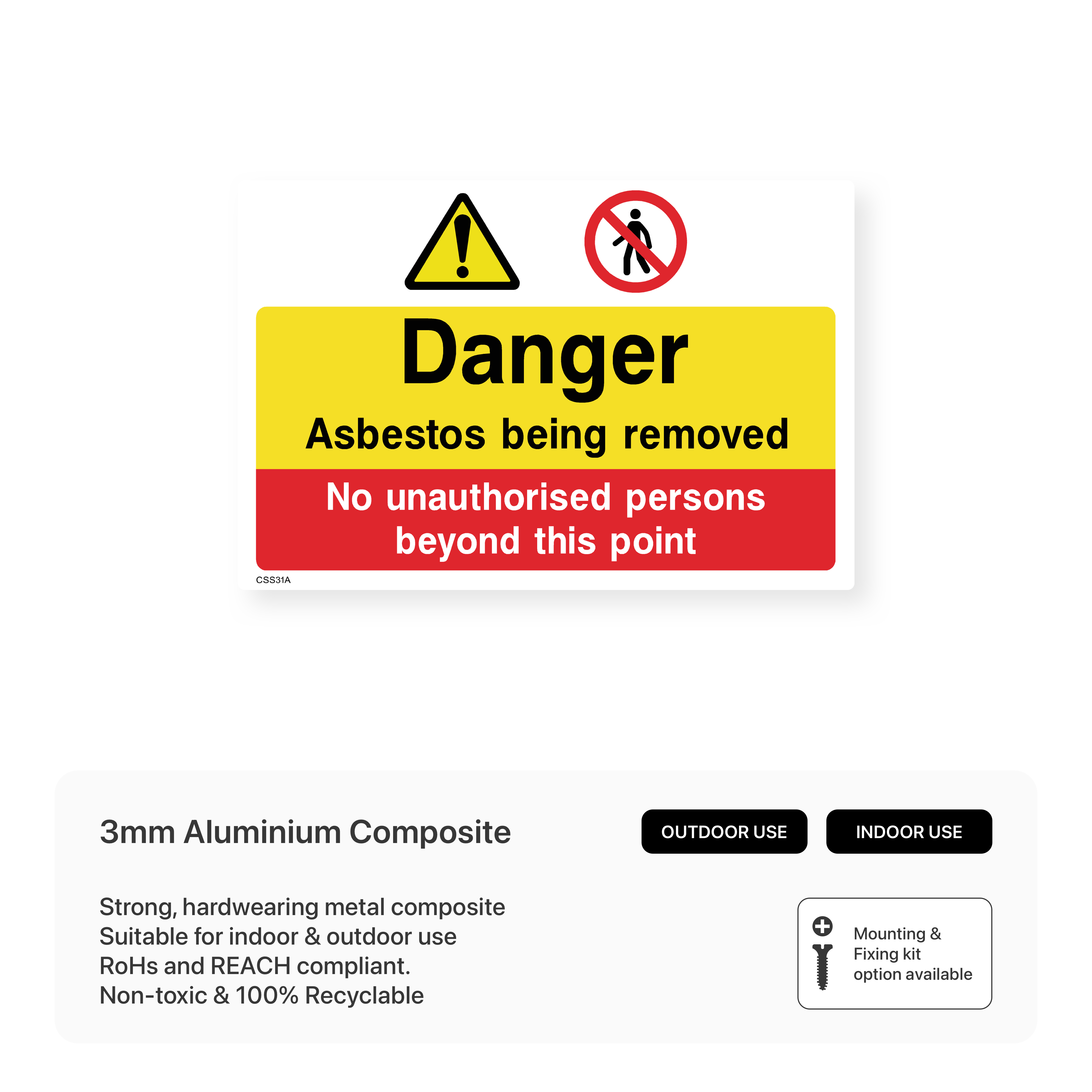 Protect workers and the public from asbestos exposure during removal with our "Danger asbestos being removed" sign. Clearly mark areas where asbestos removal is taking place to ensure proper safety procedures are followed and everyone is protected.