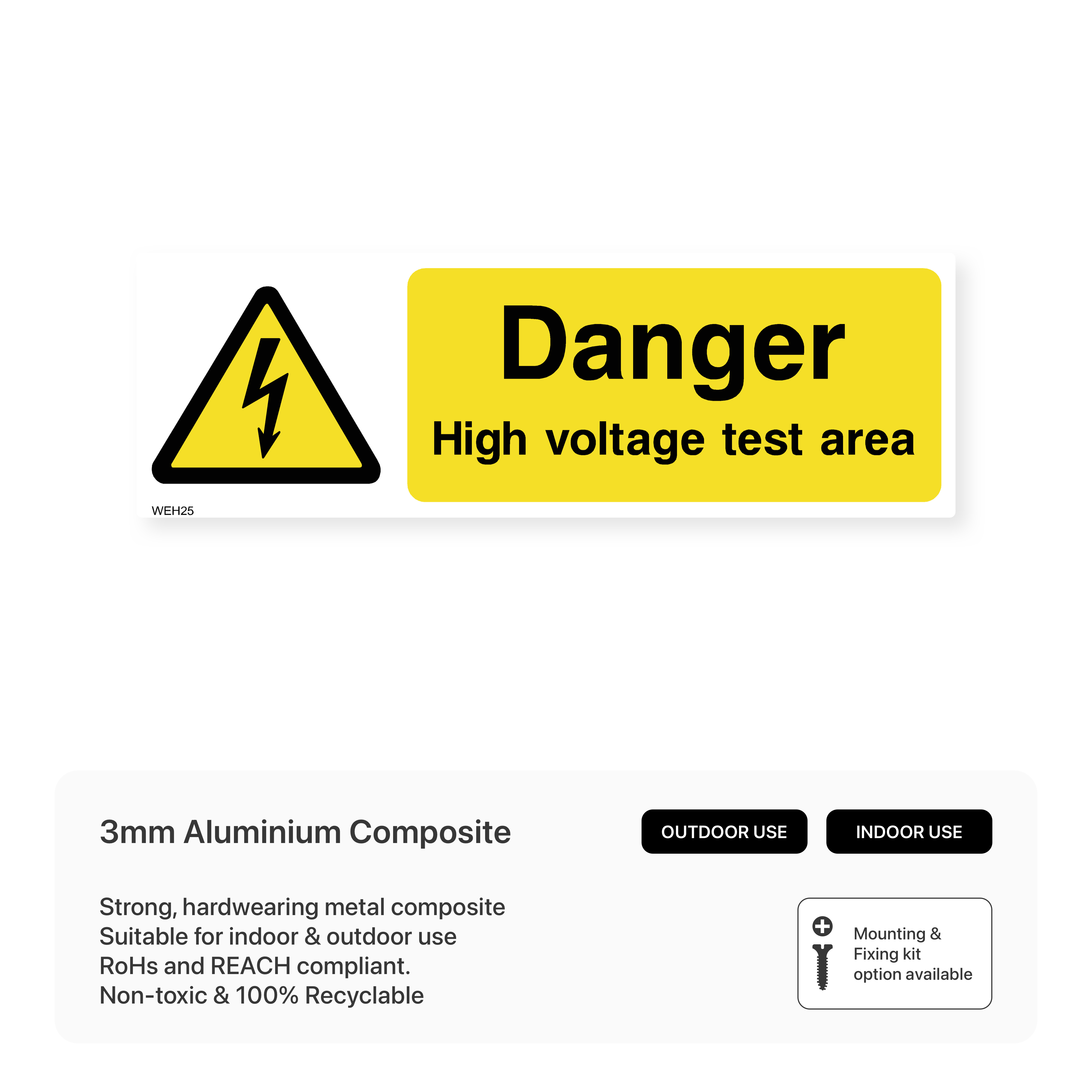 Clearly mark high voltage test areas with this sign to prevent unauthorised access and ensure the safety of employees and visitors. This sign is crucial in environments where electrical testing is conducted.