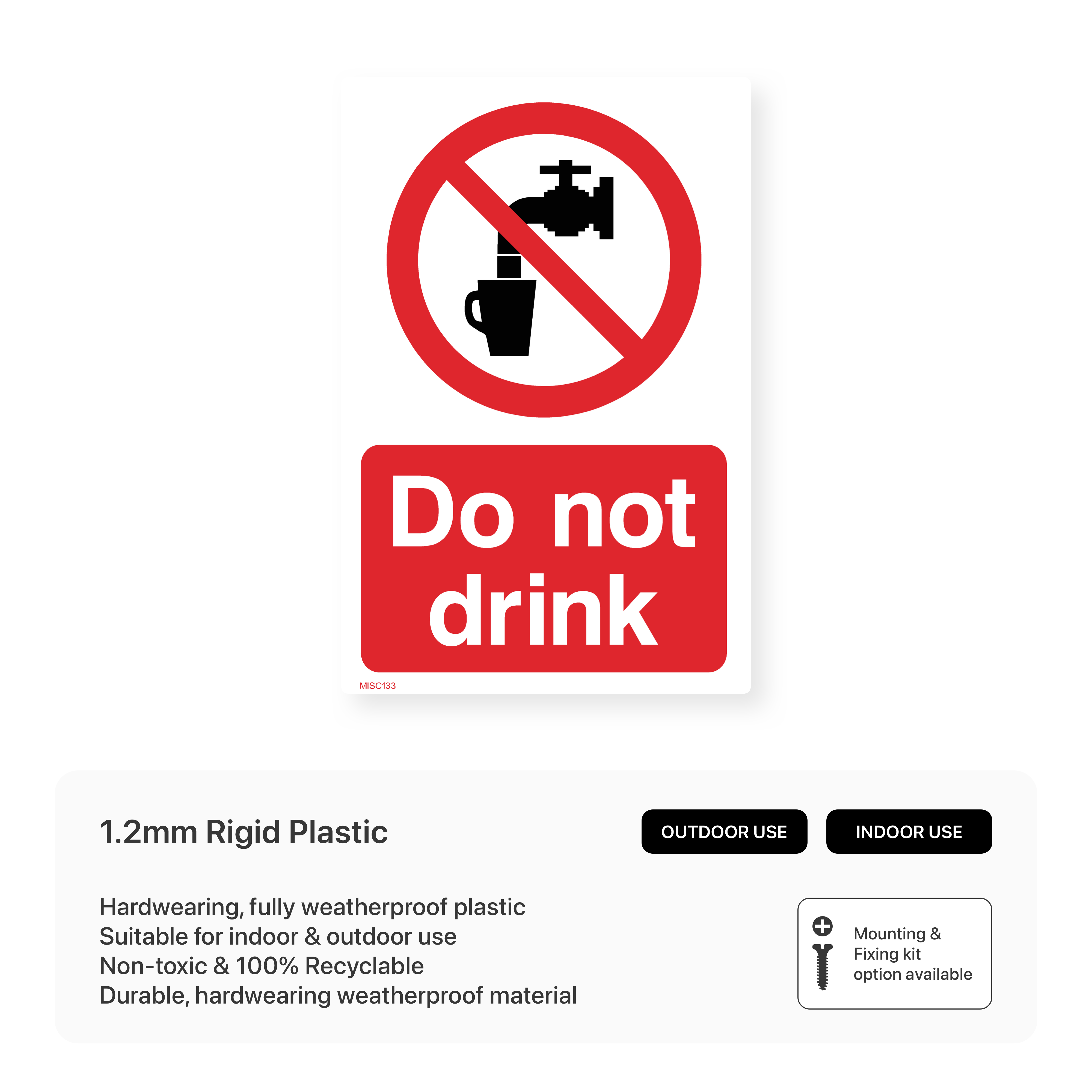 Clearly communicate that the water is not safe for drinking with our durable "Do Not Drink" signs. Ideal for industrial sites, construction zones, and areas with non-potable water sources.