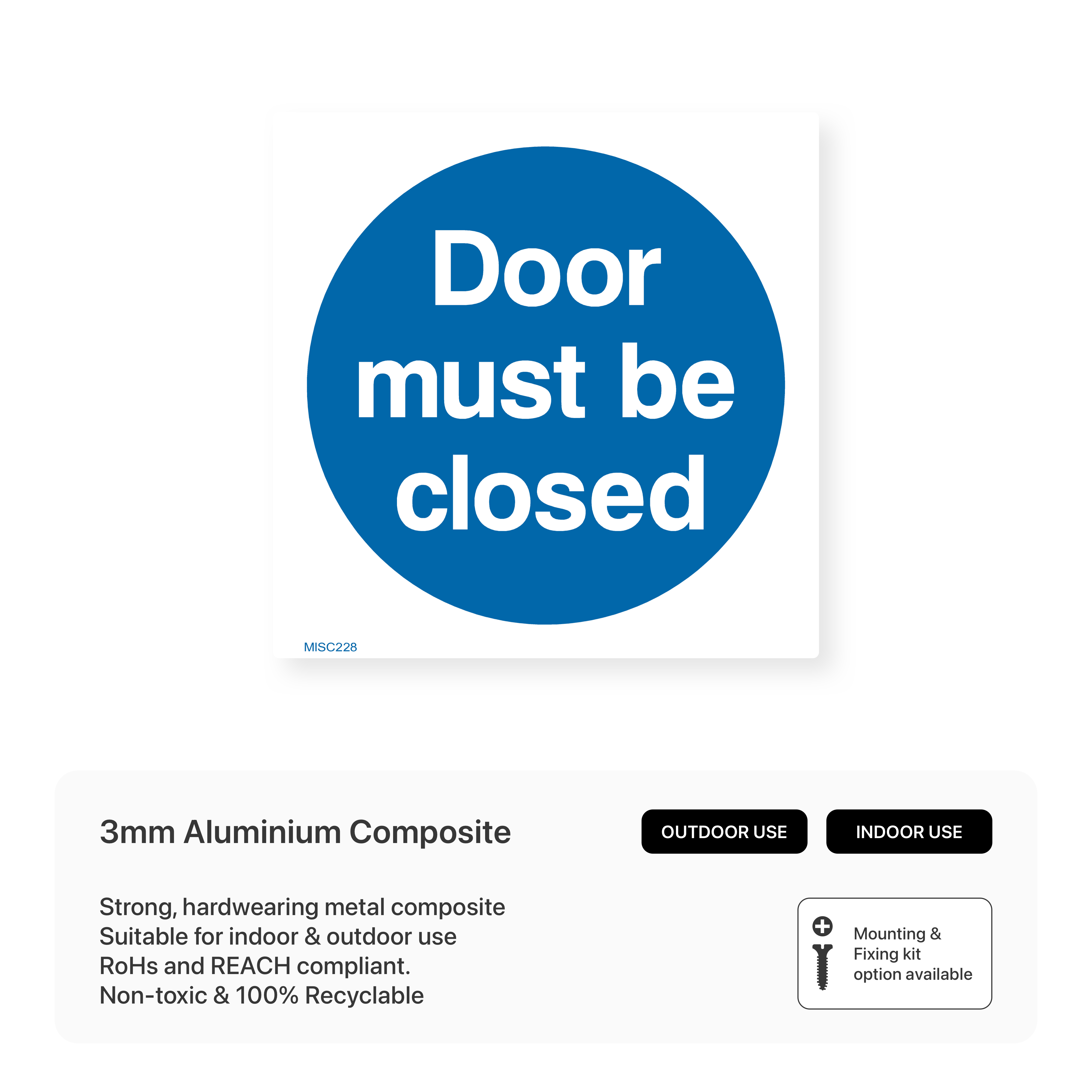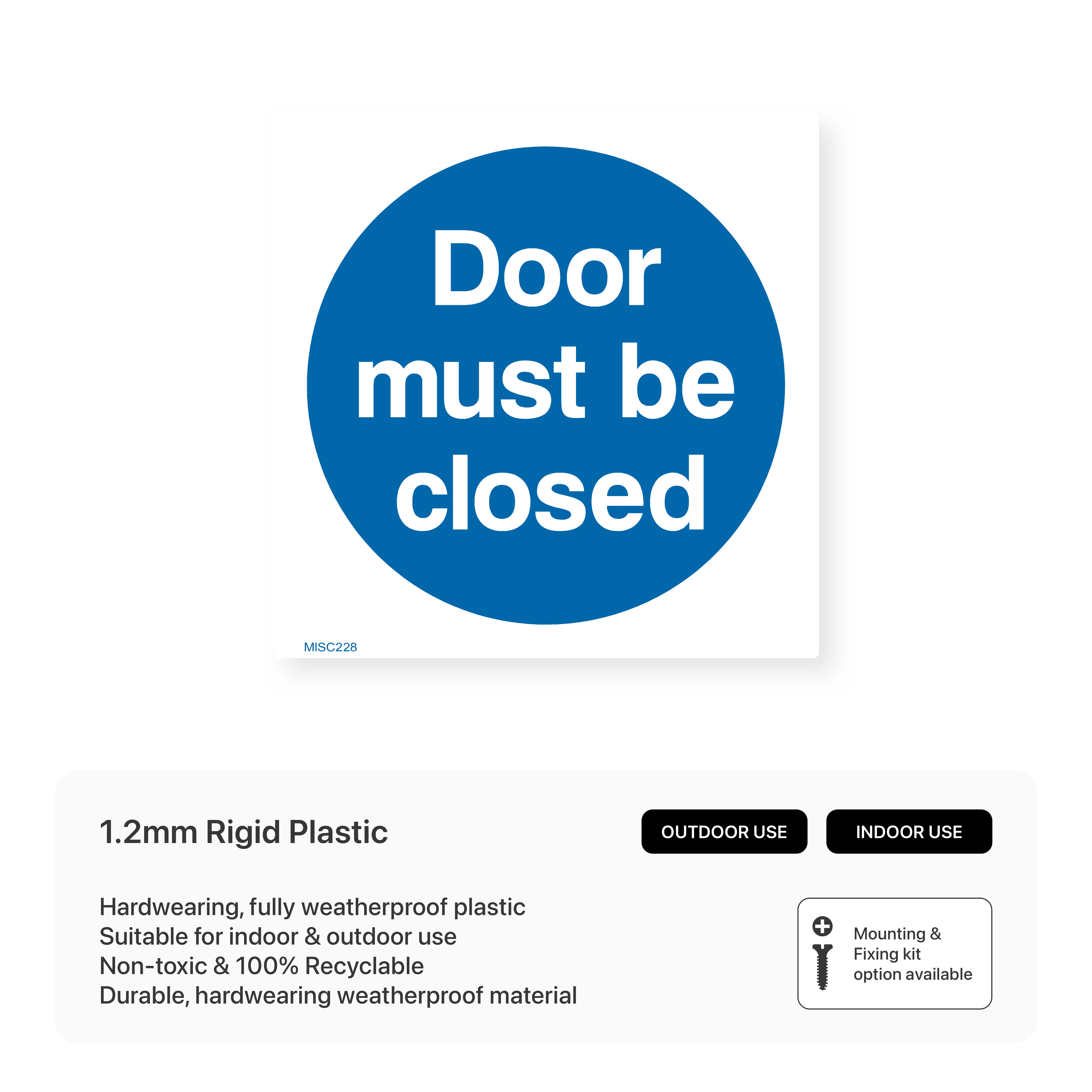 Maintain security, fire safety, and energy efficiency with our "Door Must Be Closed" signs. Clearly communicate the requirement to keep doors closed in designated areas.