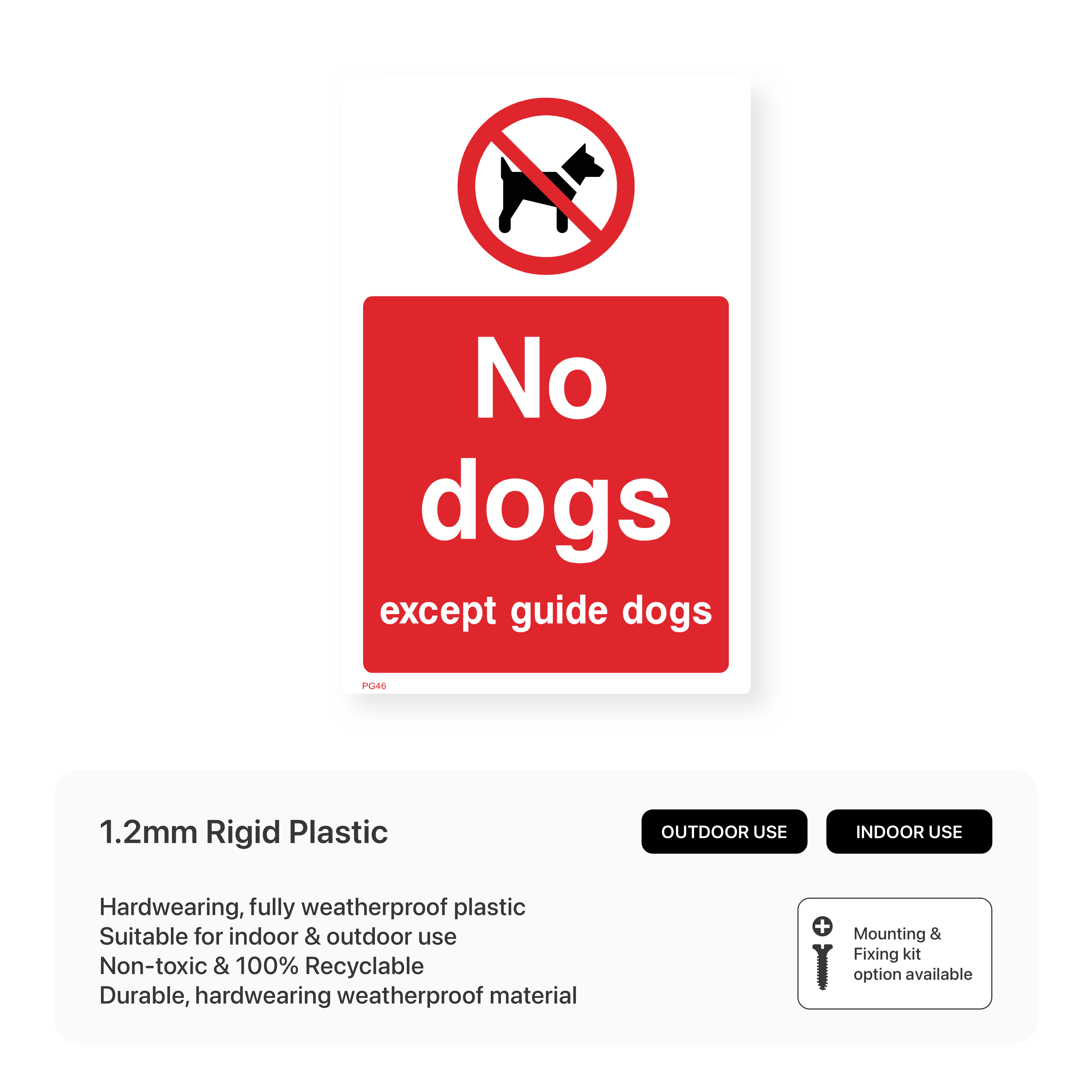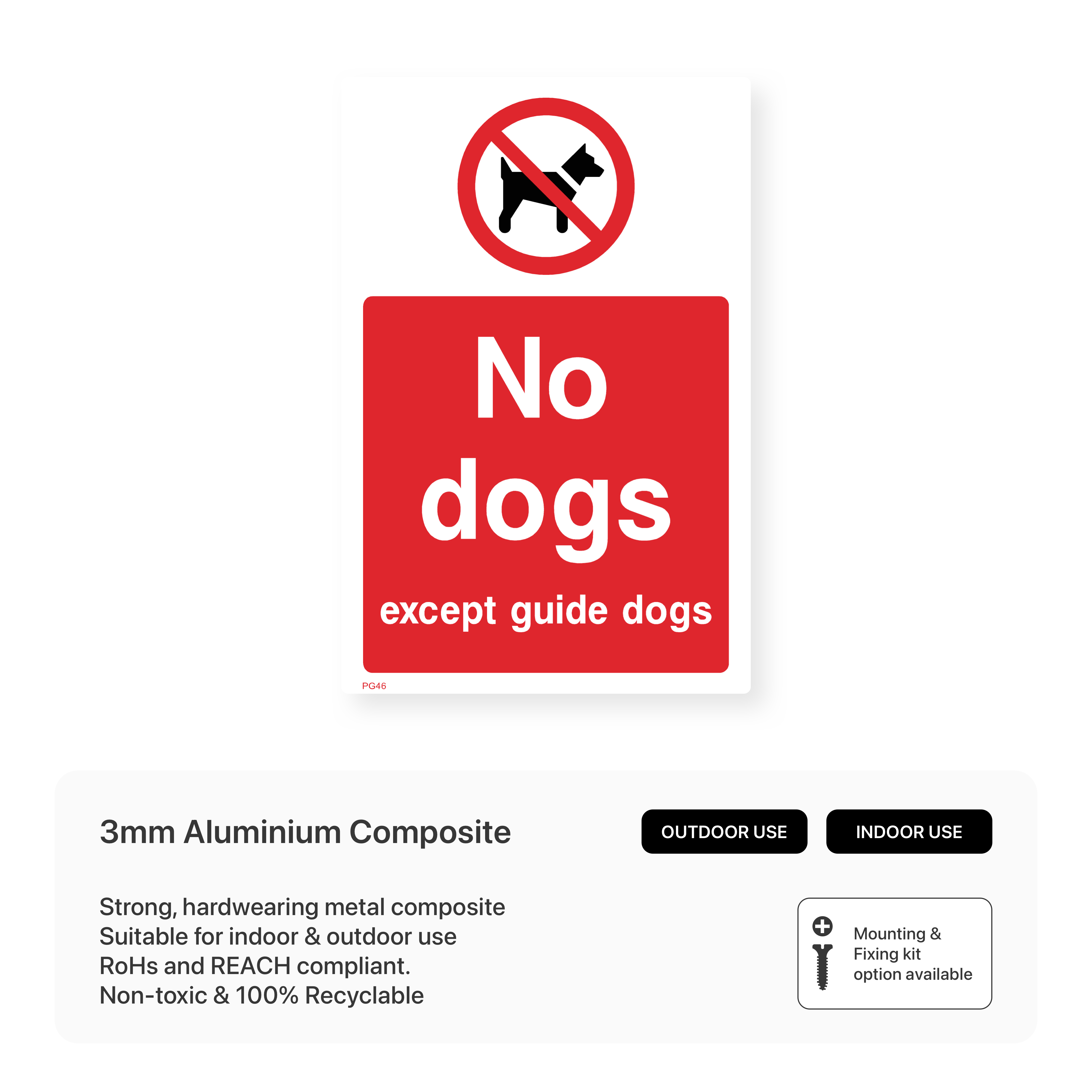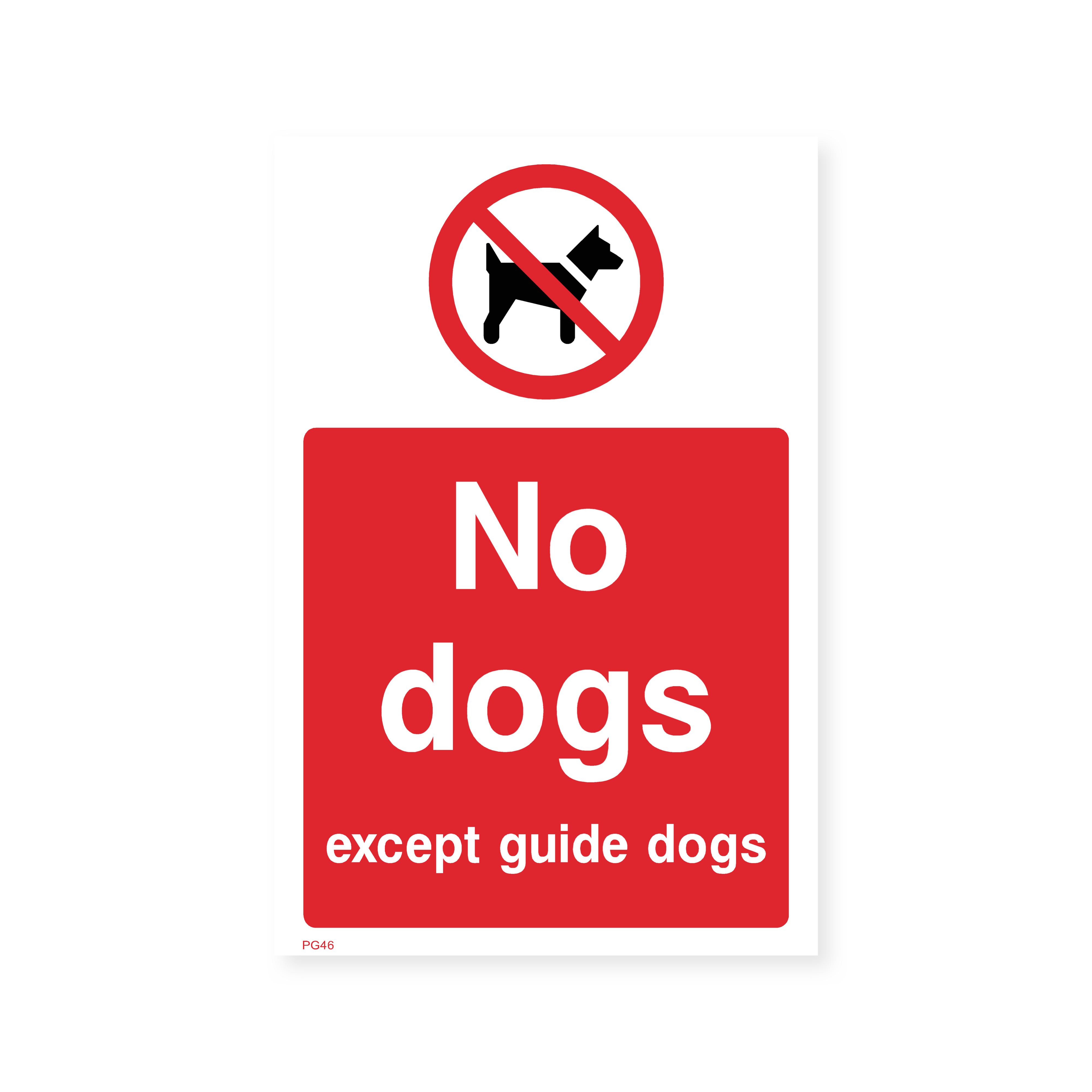 Ensure accessibility and compliance with regulations with our "No Dogs Except Guide Dogs" portrait sign. This sign clearly communicates the exception for guide dogs while prohibiting other dogs in designated areas. Available in various sizes and materials, it is suitable for public spaces, businesses, and other areas where pets may not be allowed.