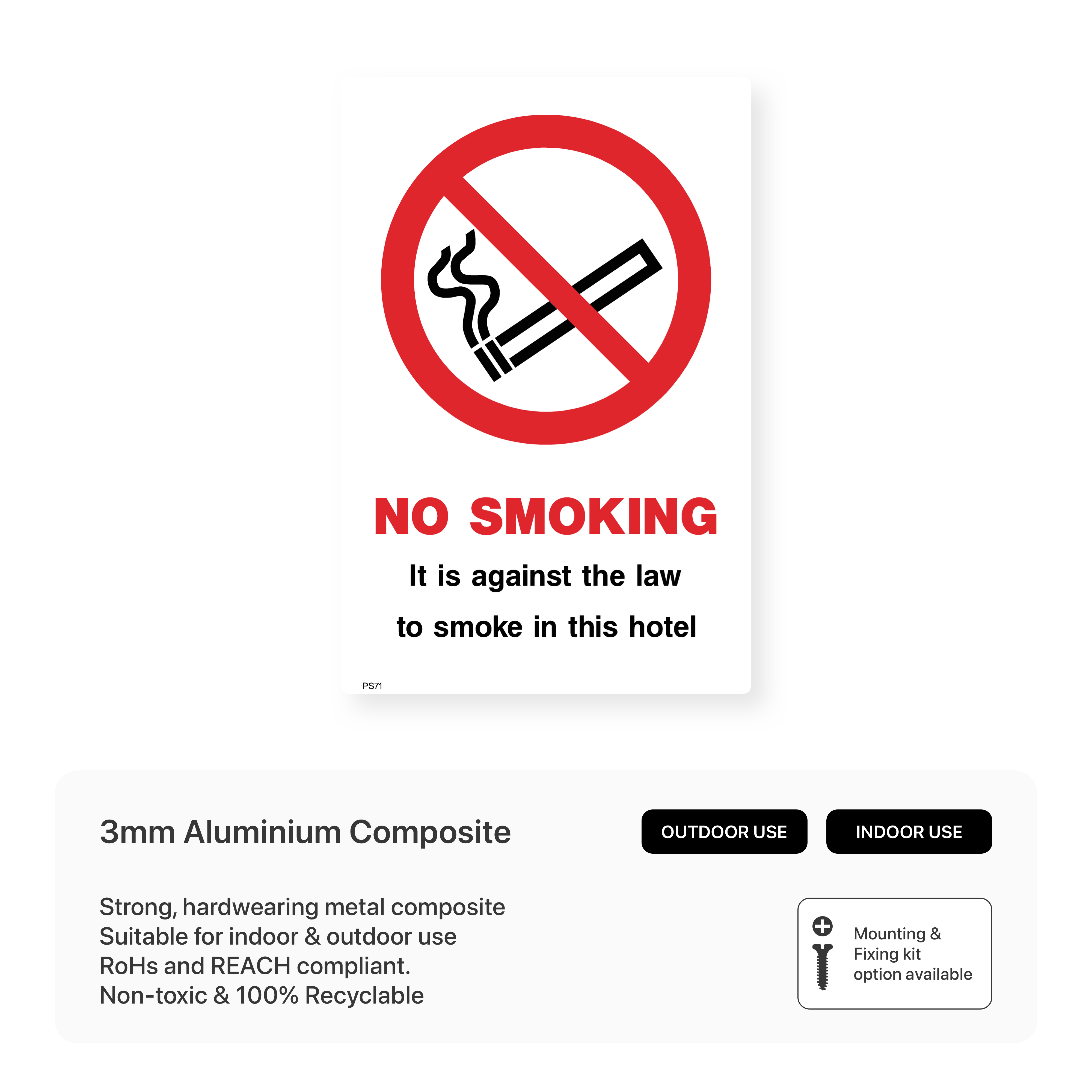 Ensure a smoke-free environment in your hotel with this "NO SMOKING - It is against the law to smoke in this hotel" sign. This sign clearly communicates the legal prohibition of smoking in hotels and helps guests comply with regulations. Create a welcoming and healthy environment for all guests with this informative sign.