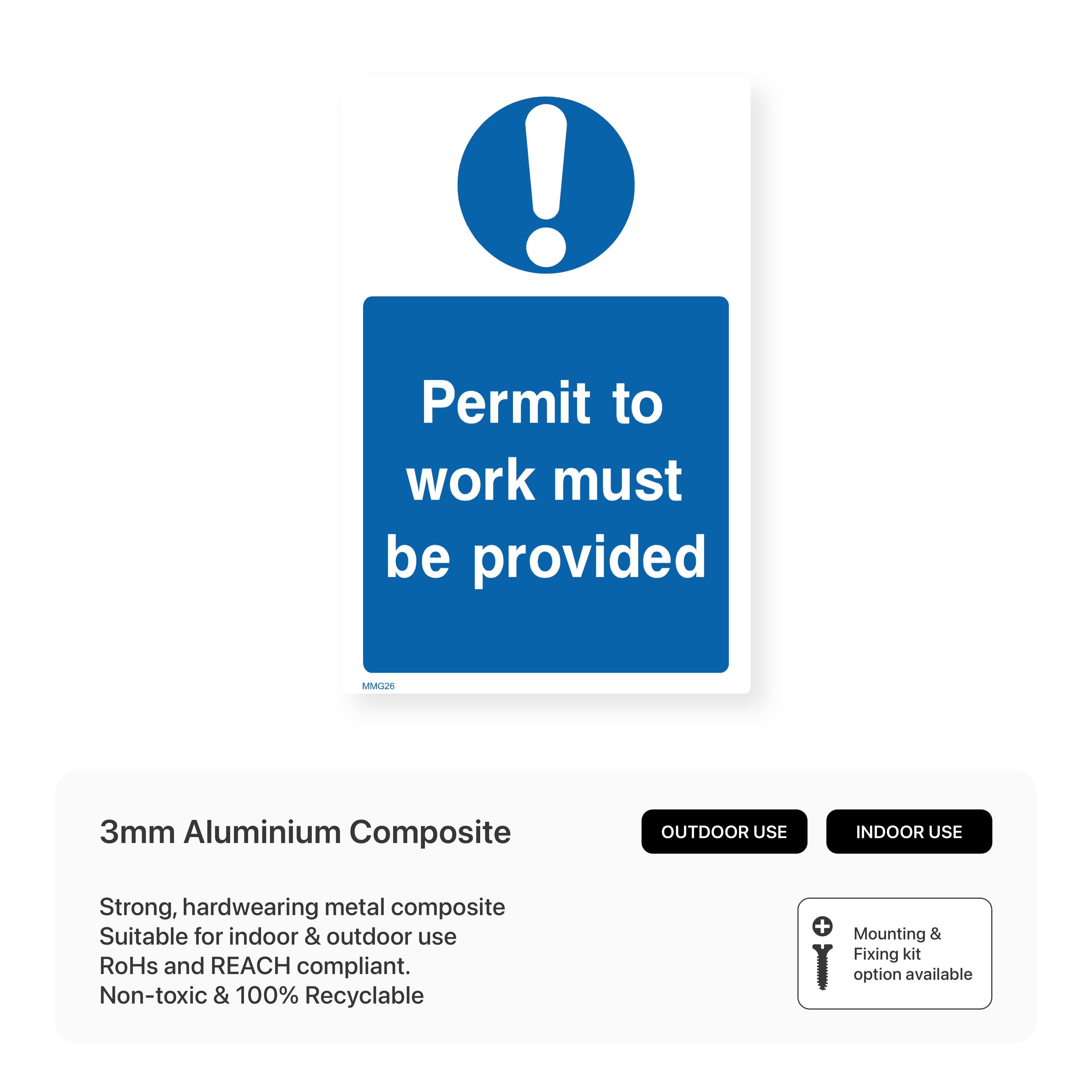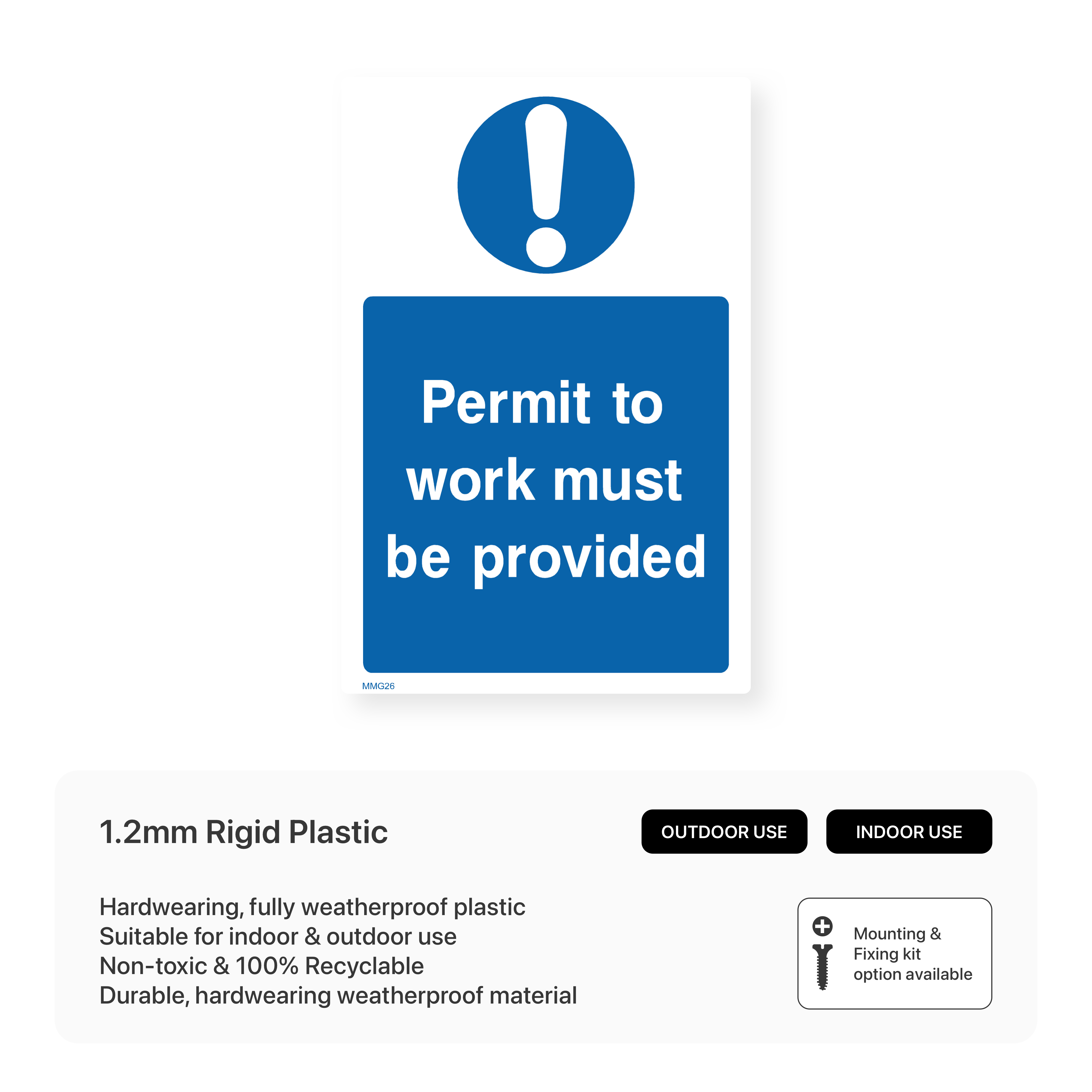 Ensure safe work practices in hazardous areas with our "Permit to Work Must Be Provided" signs. Clearly communicate that a permit is required before commencing work.