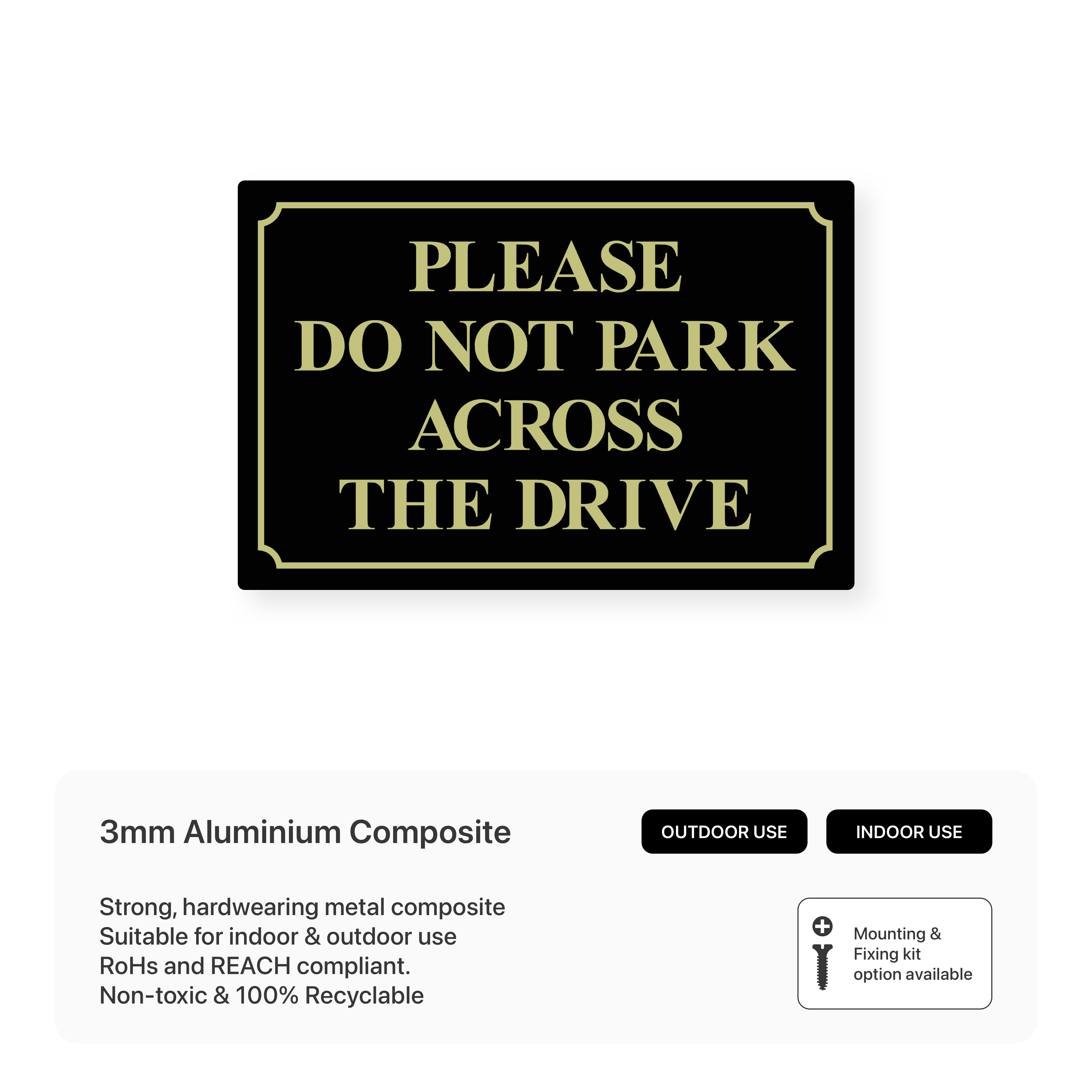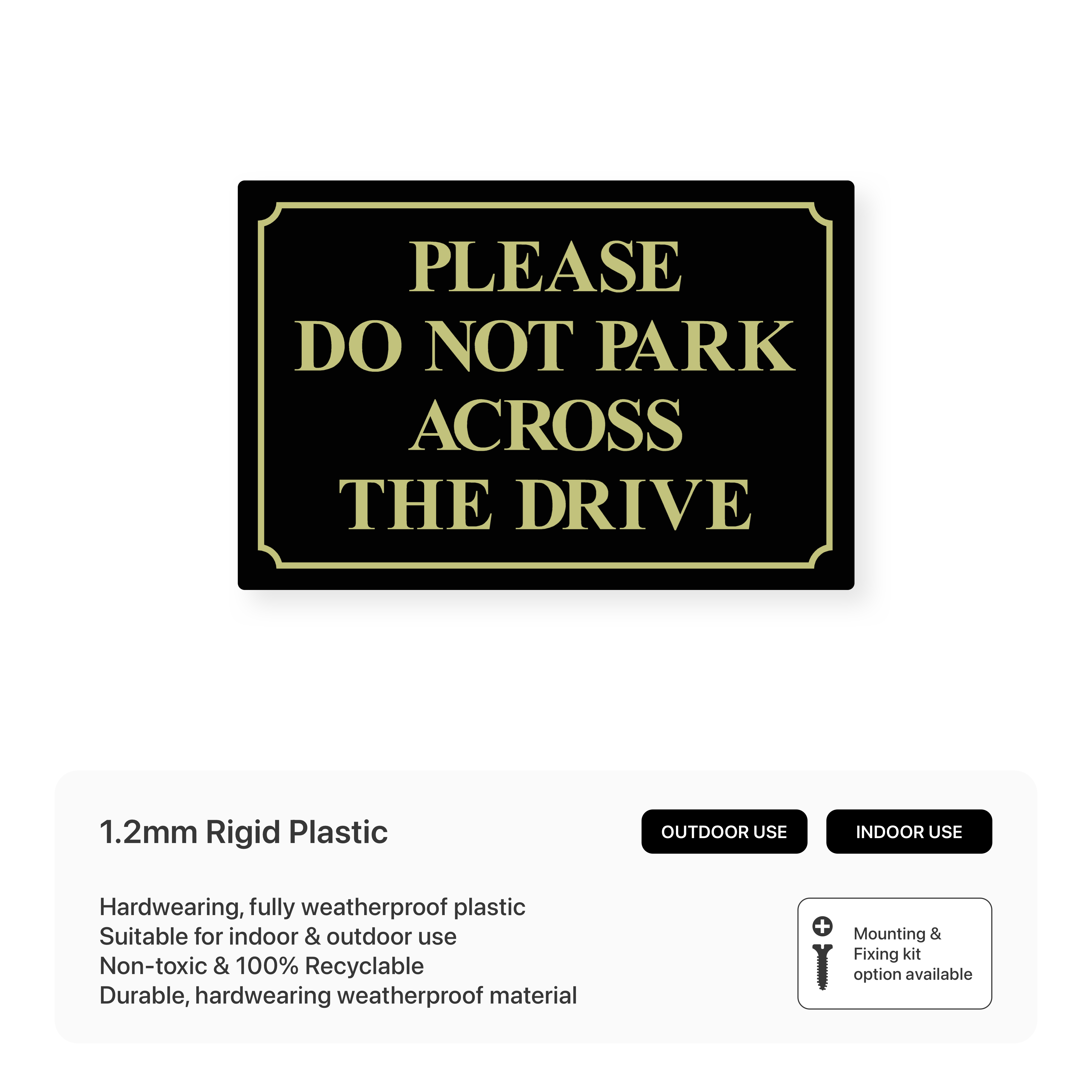 Maintain access to your driveway with our "Please do not park across the drive" sign. This polite yet firm sign discourages unwanted parking, ensuring that your driveway remains clear for your vehicles and emergency services.