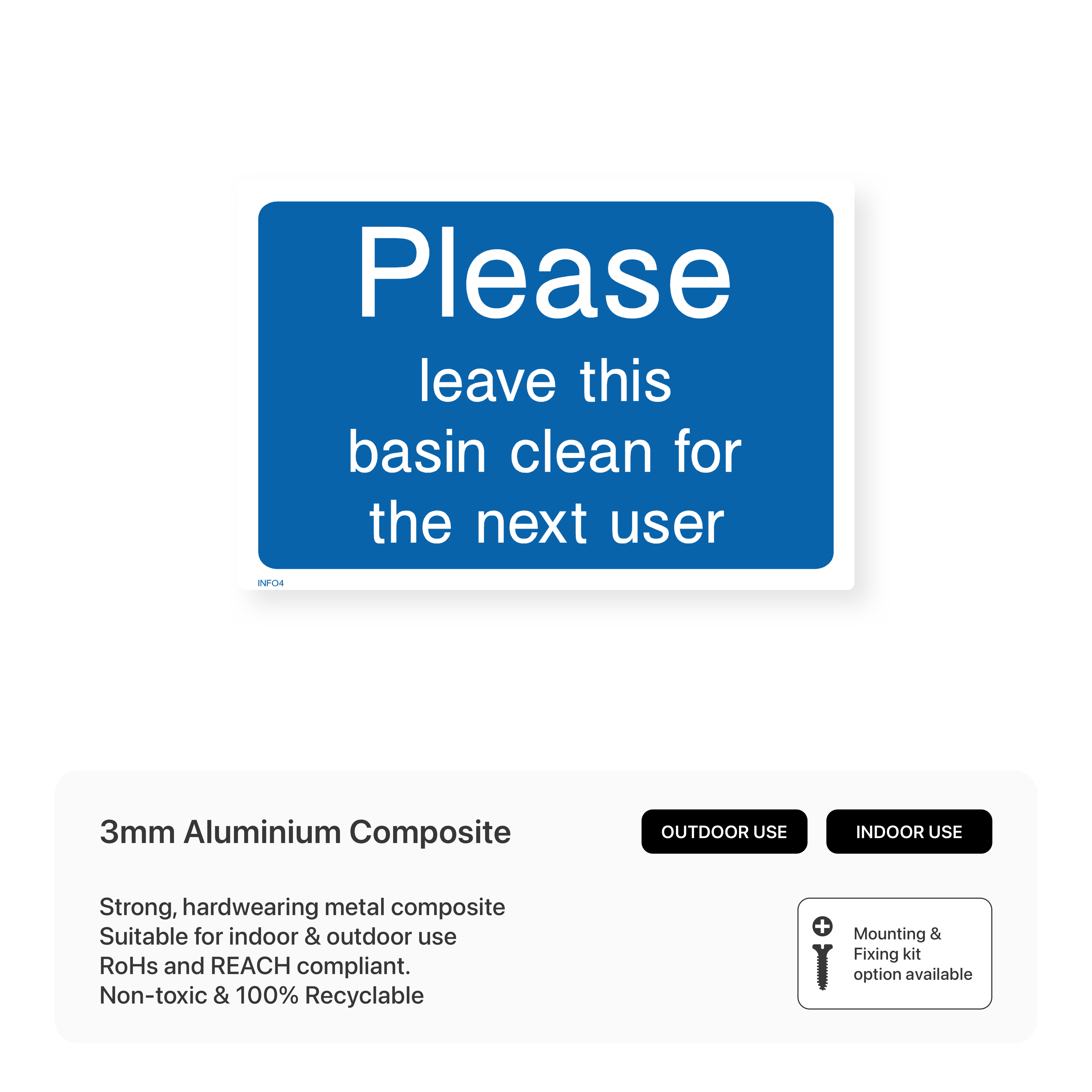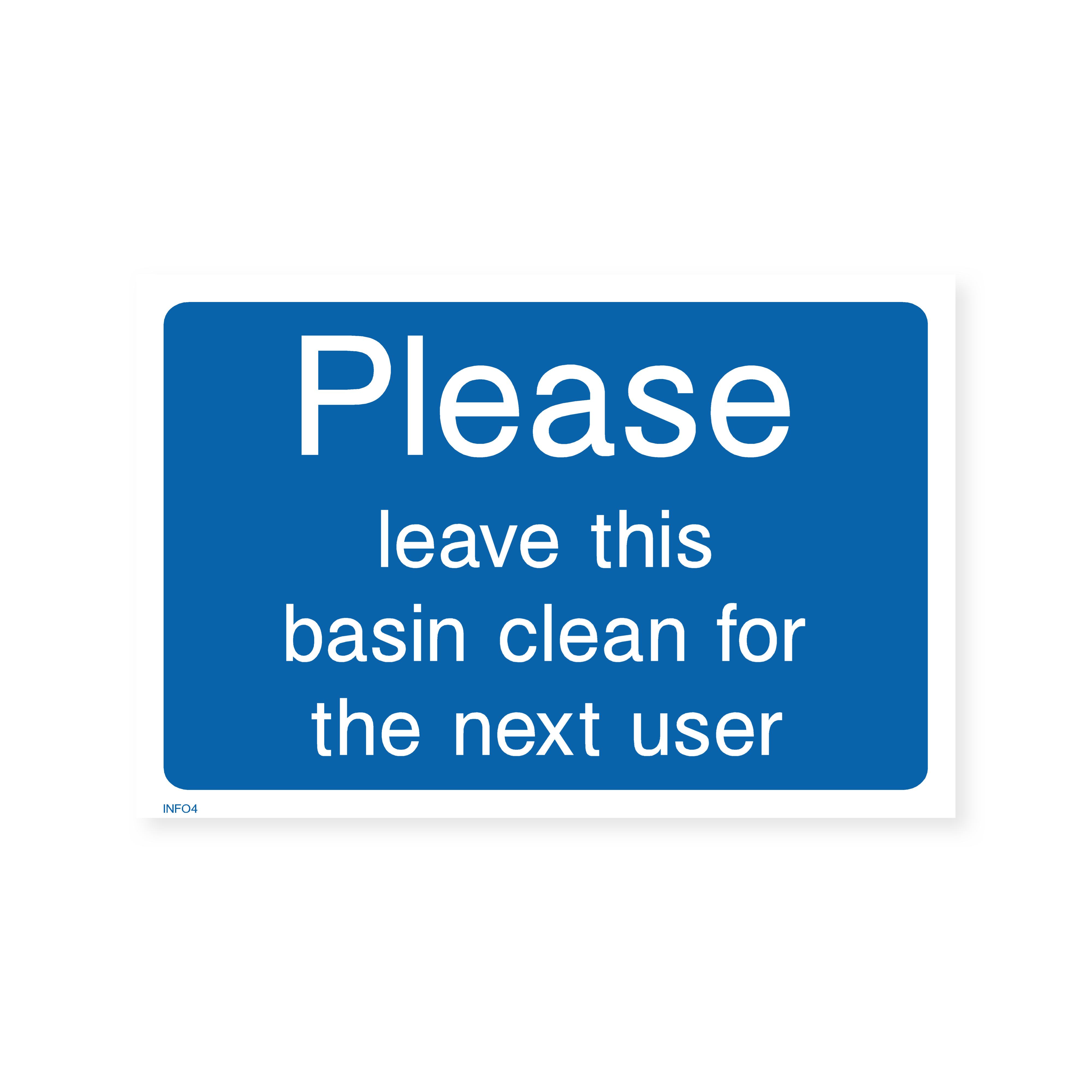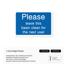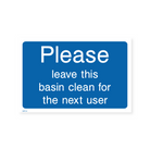 Promote cleanliness and hygiene in restrooms with our "Please leave this basin clean for the next user" sign. This sign encourages users to rinse the basin after use, ensuring a clean and sanitary environment for everyone.