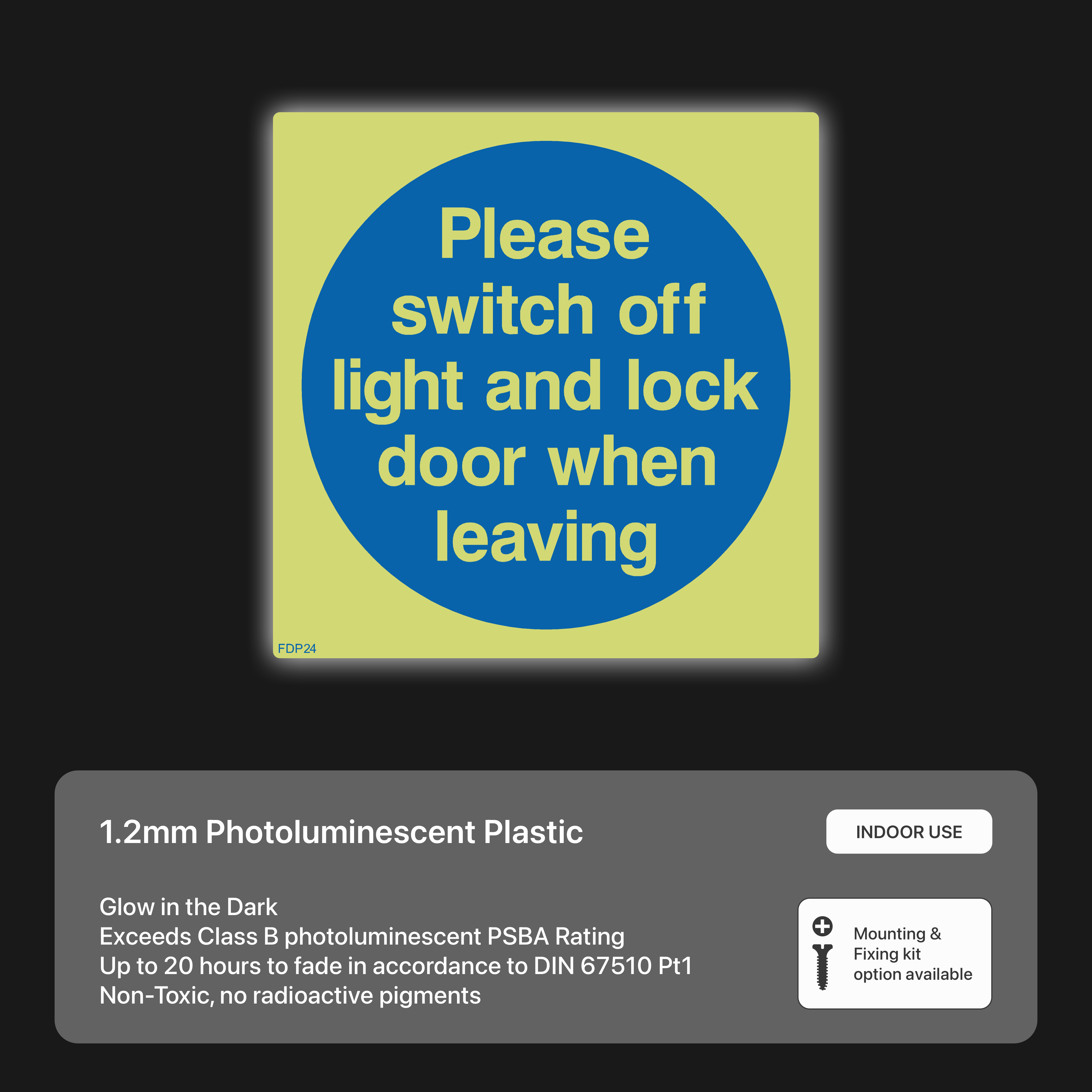 Enhance security and energy efficiency with our "Please switch off light and lock door when leaving" sign. This sign reminds individuals to turn off lights and lock the door when leaving a room or area, helping to deter unauthorized entry and reduce energy consumption.