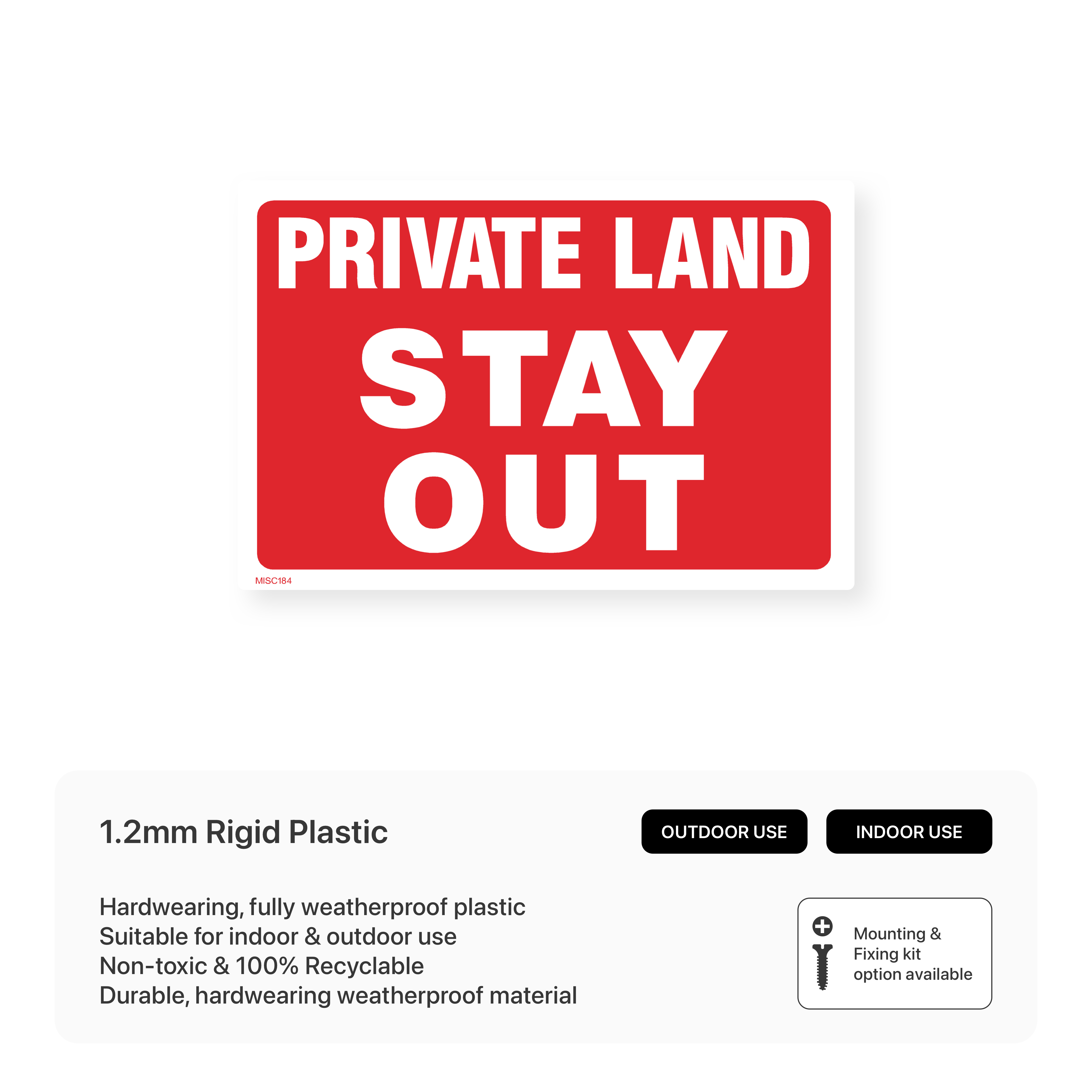 Protect your private land and deter trespassers with our bold and clear "Private Land Stay Out" signs. Ensure the security and privacy of your property.