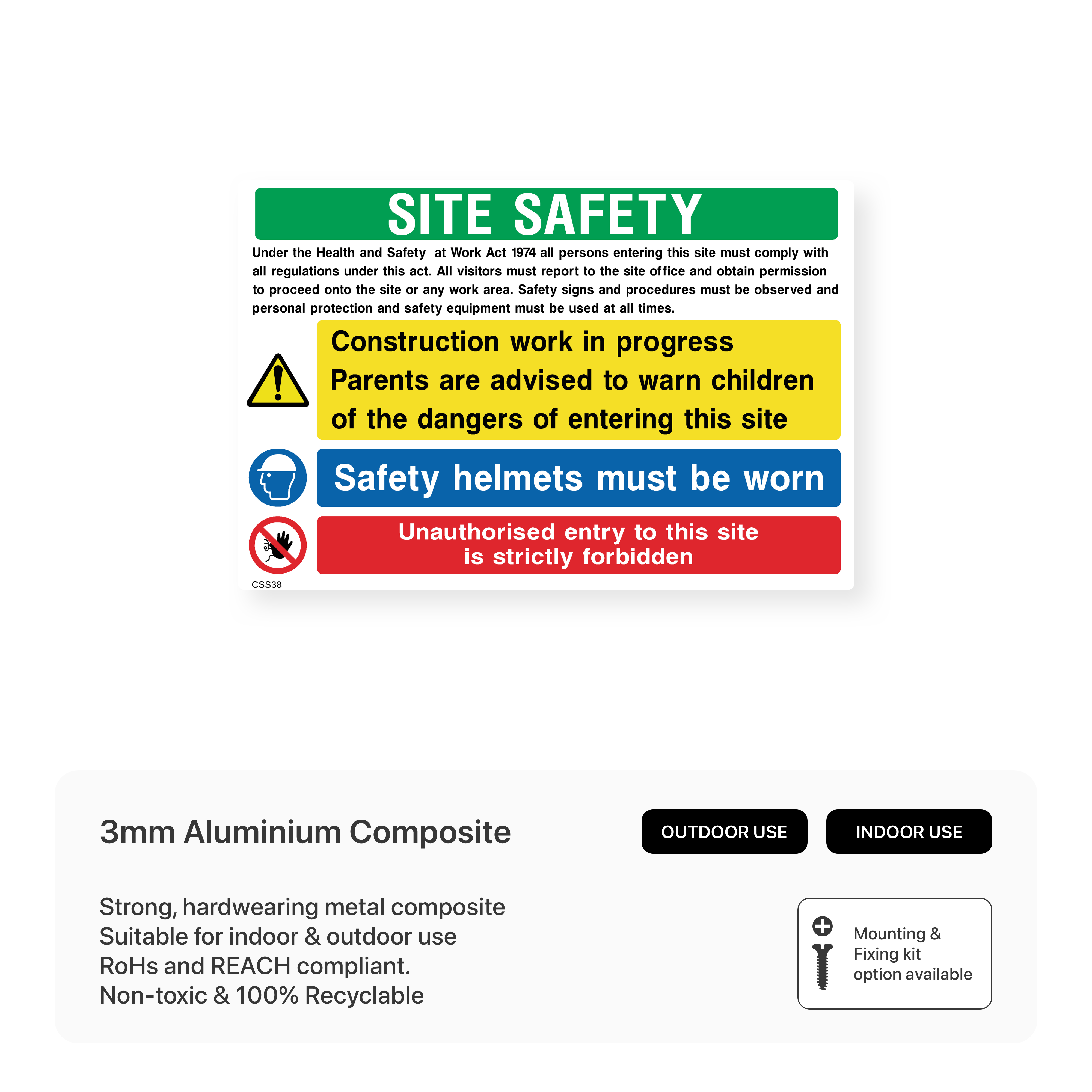 Inform workers and visitors of ongoing construction activities with our "Site safety - Construction work in progress" sign. Clearly mark areas where construction is taking place to promote awareness and ensure the safety of everyone on site.