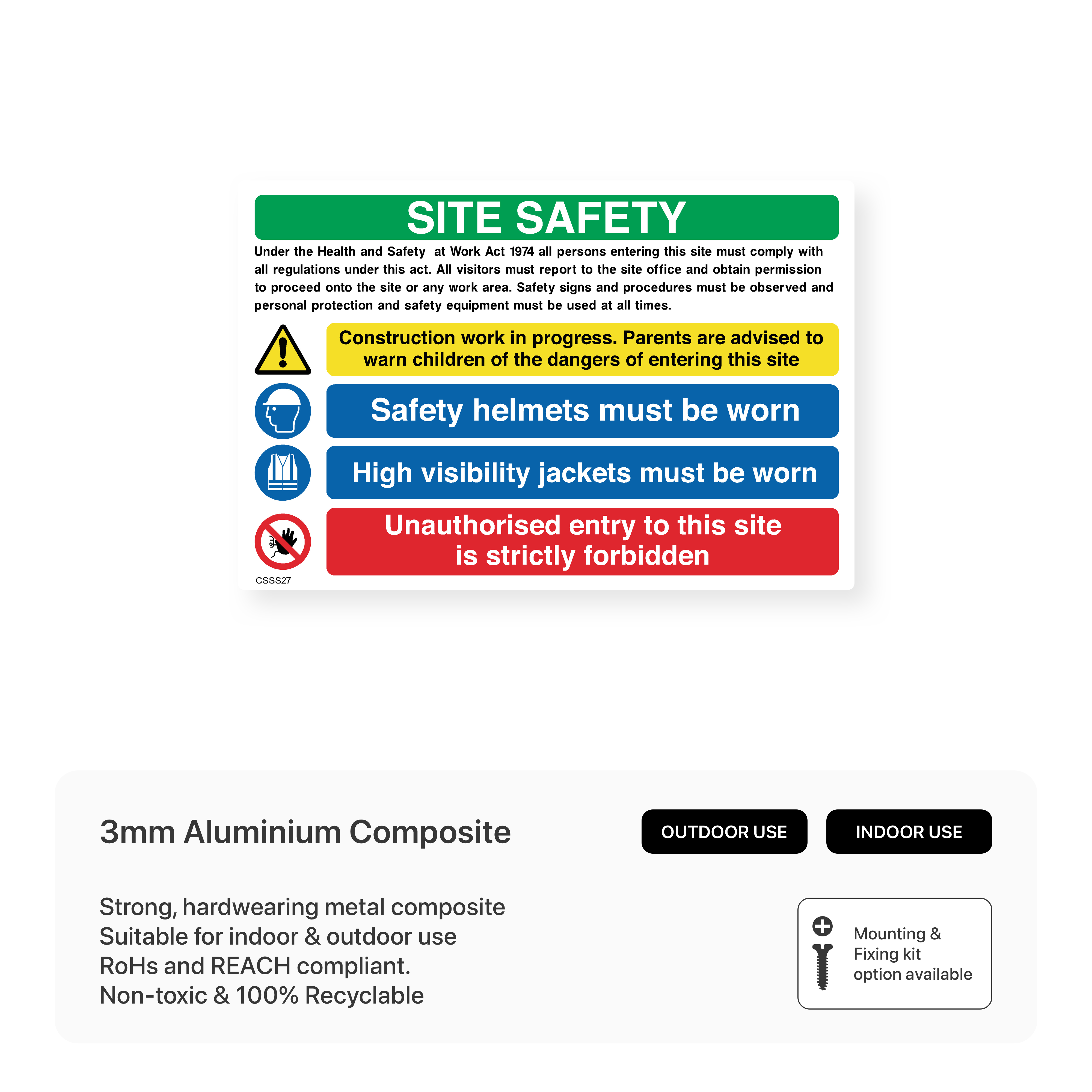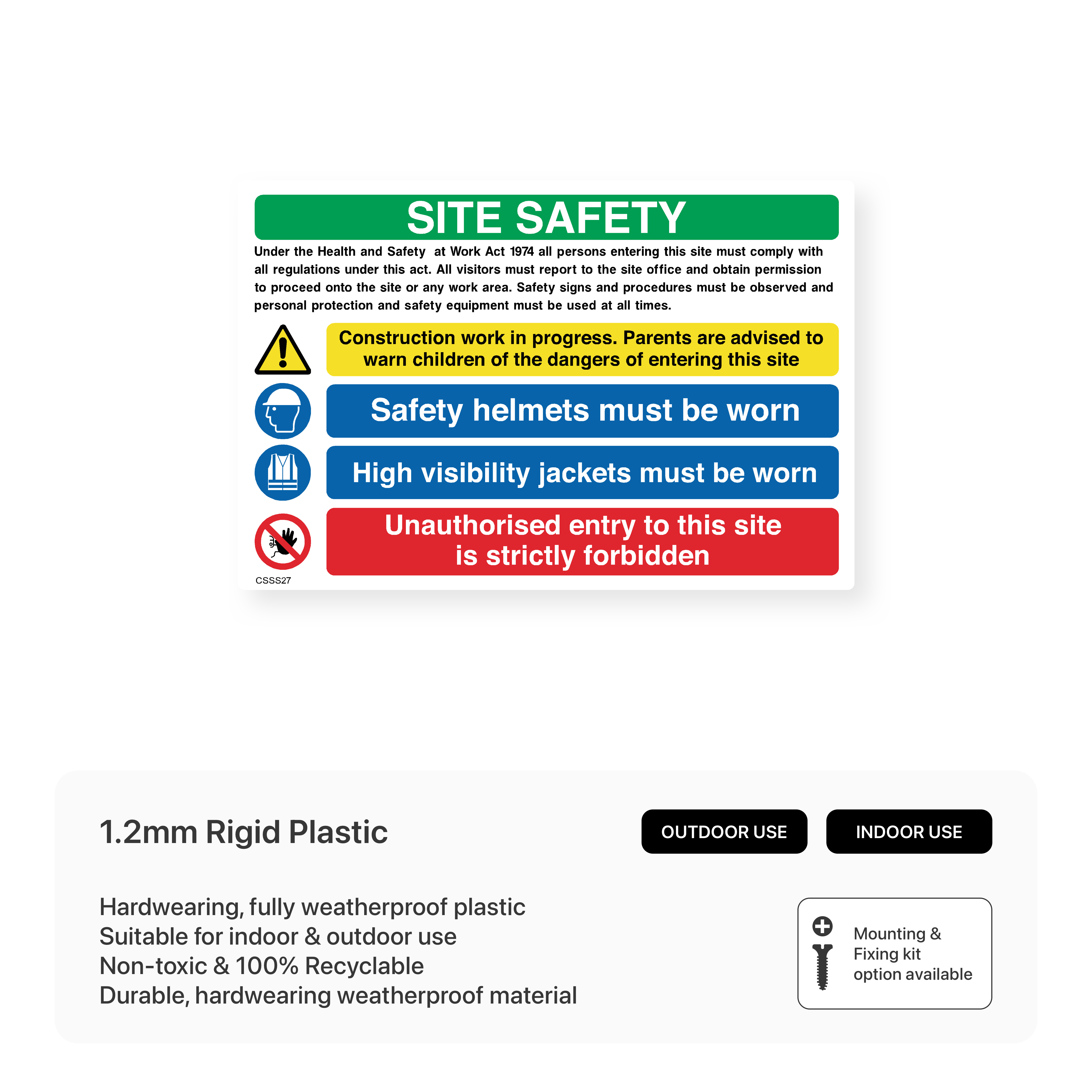 Ensure compliance with health and safety regulations with our "Site safety - Under the health and safety at work act 1974" sign. This sign informs workers and visitors of the legal framework governing workplace safety, promoting a culture of responsibility and awareness.