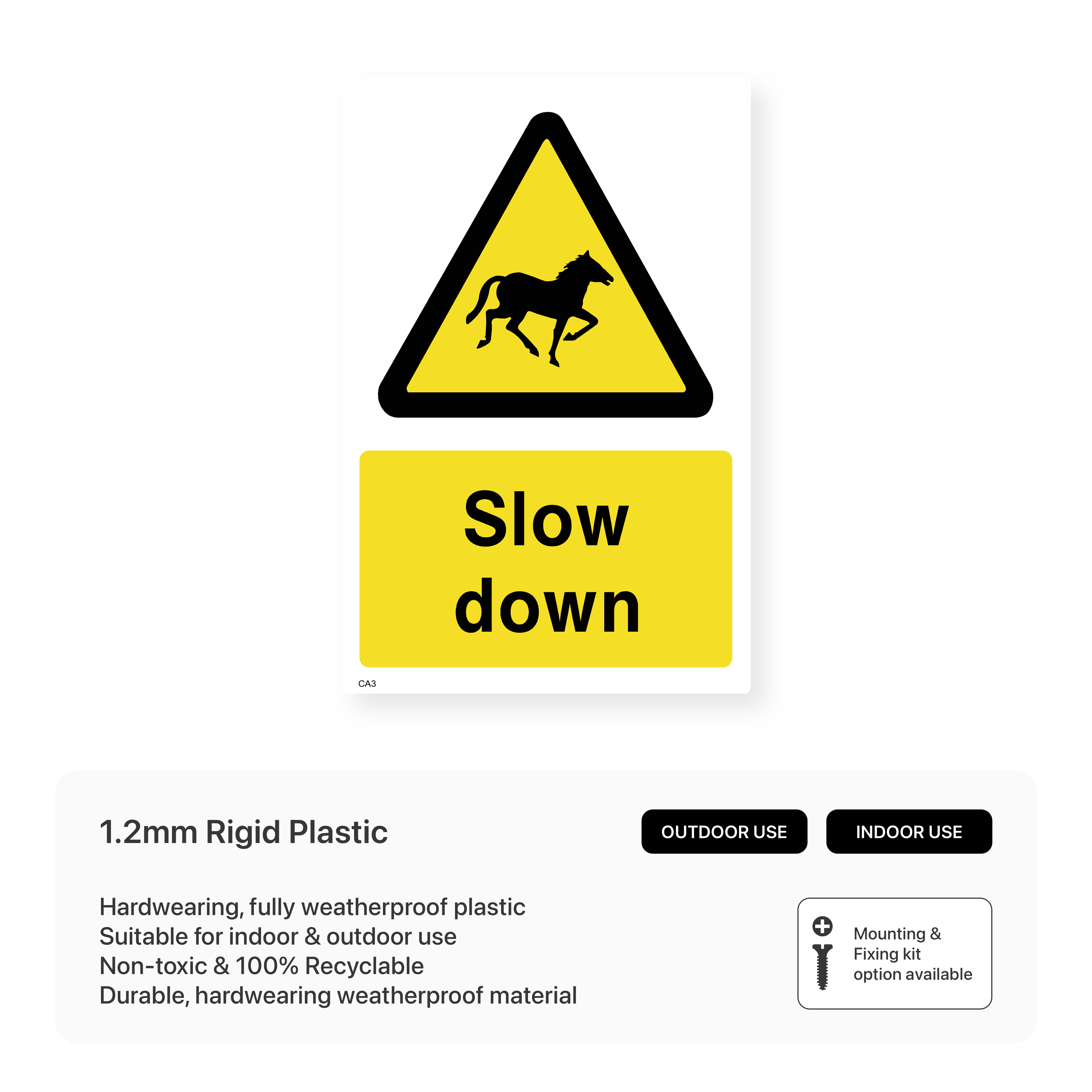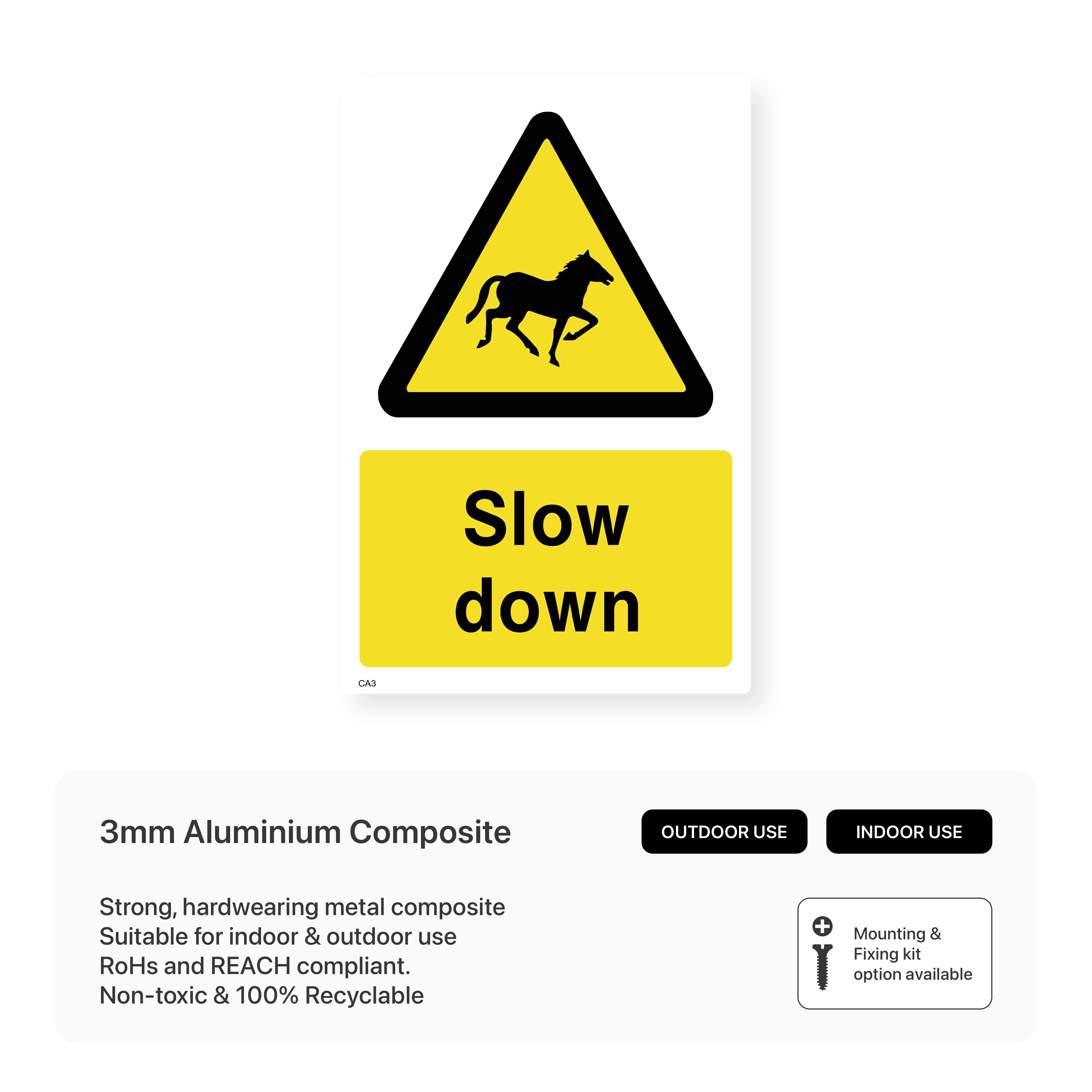 Promote road safety in areas with horses. These eye-catching signs, available in various sizes and materials, encourage drivers to reduce speed and proceed with caution, minimizing the risk of accidents and ensuring the safety of both horses and riders.