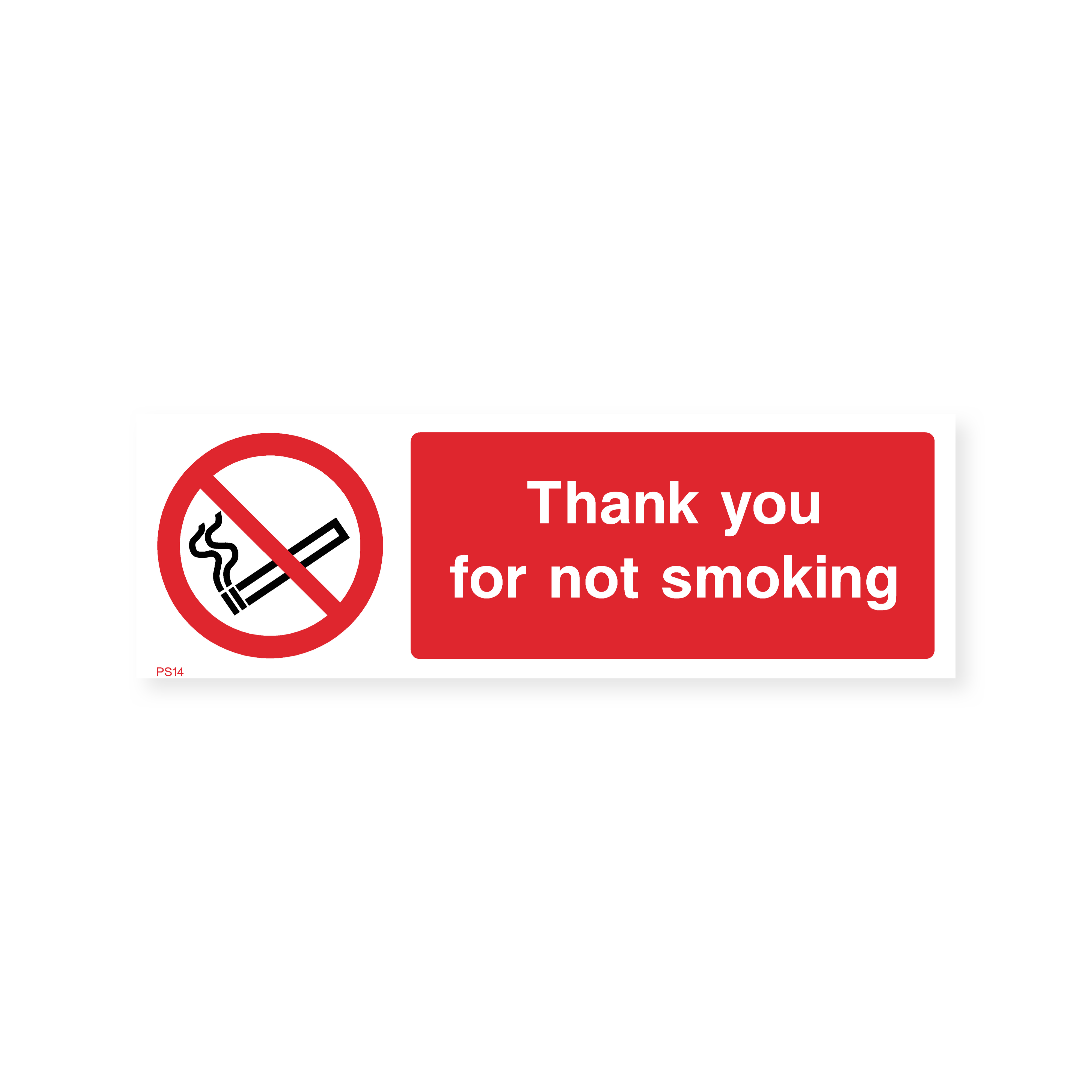 Express your appreciation for non-smokers with this polite and positive rectangular "Thank You for Not Smoking" sign. This sign encourages compliance with your no-smoking policy and fosters a respectful atmosphere for everyone. Create a welcoming and healthy environment with this simple yet effective sign.