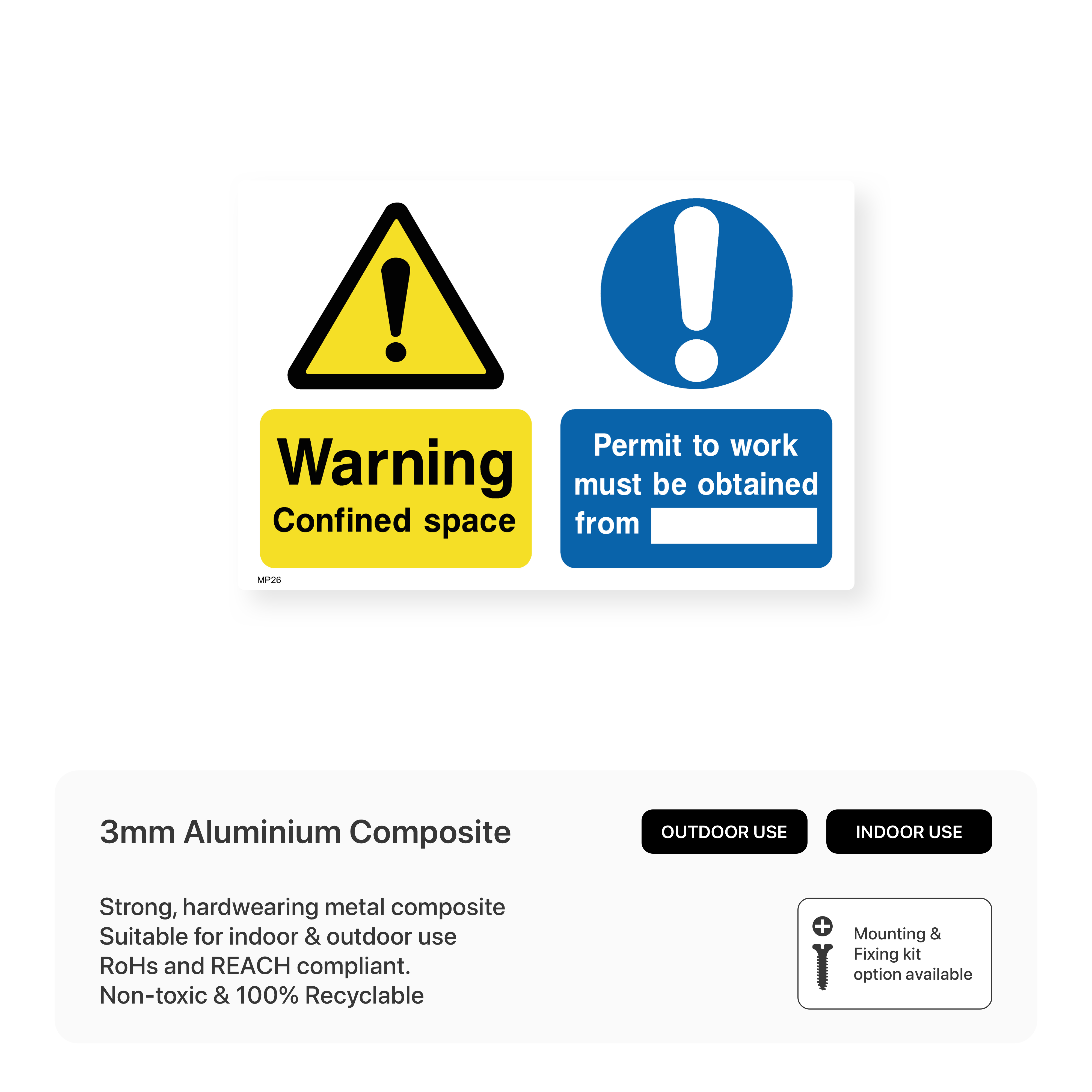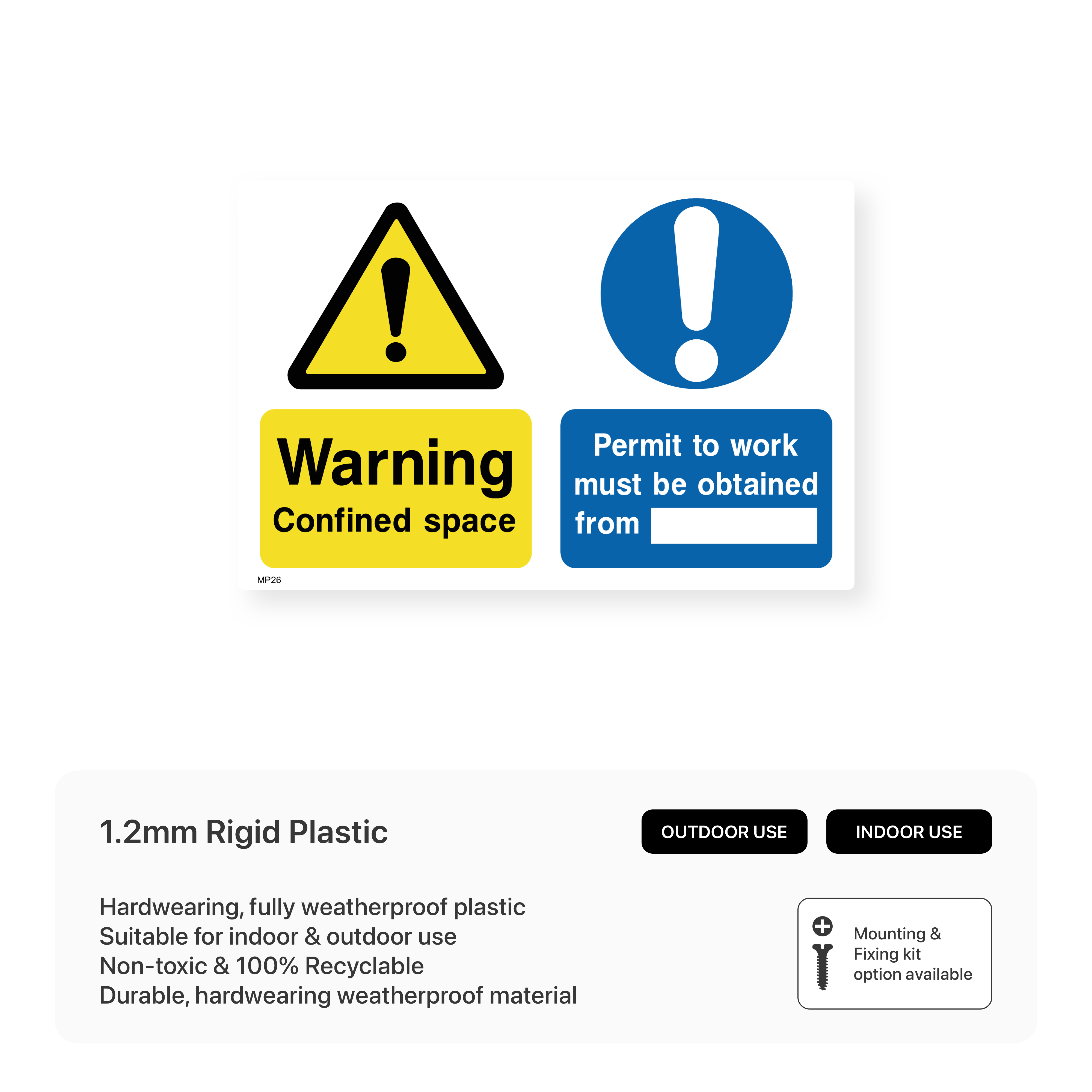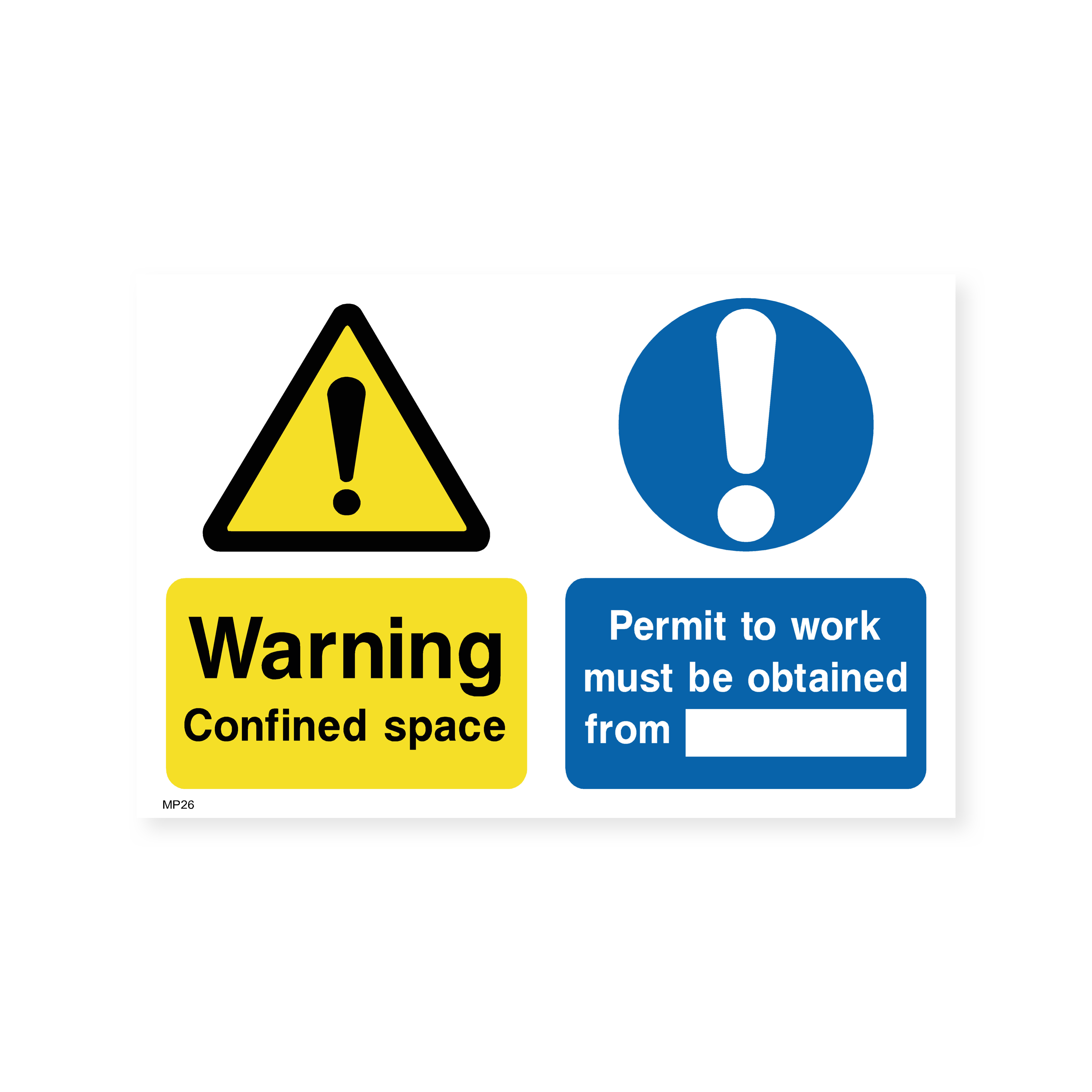 Regulate access to confined spaces with this essential safety sign. It clearly communicates the requirement to obtain a permit to work before entering, ensuring that only authorized personnel can access the area. Perfect for industries with strict safety protocols.