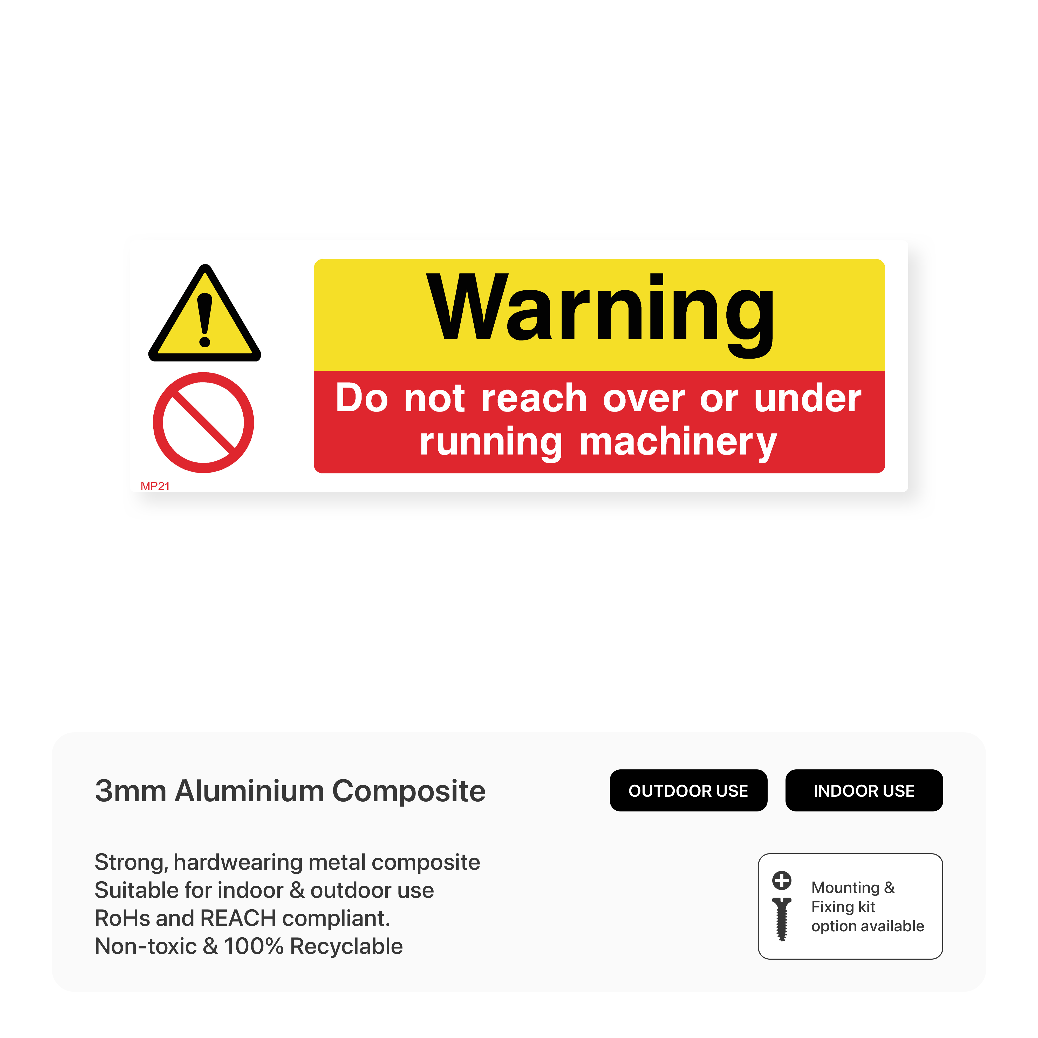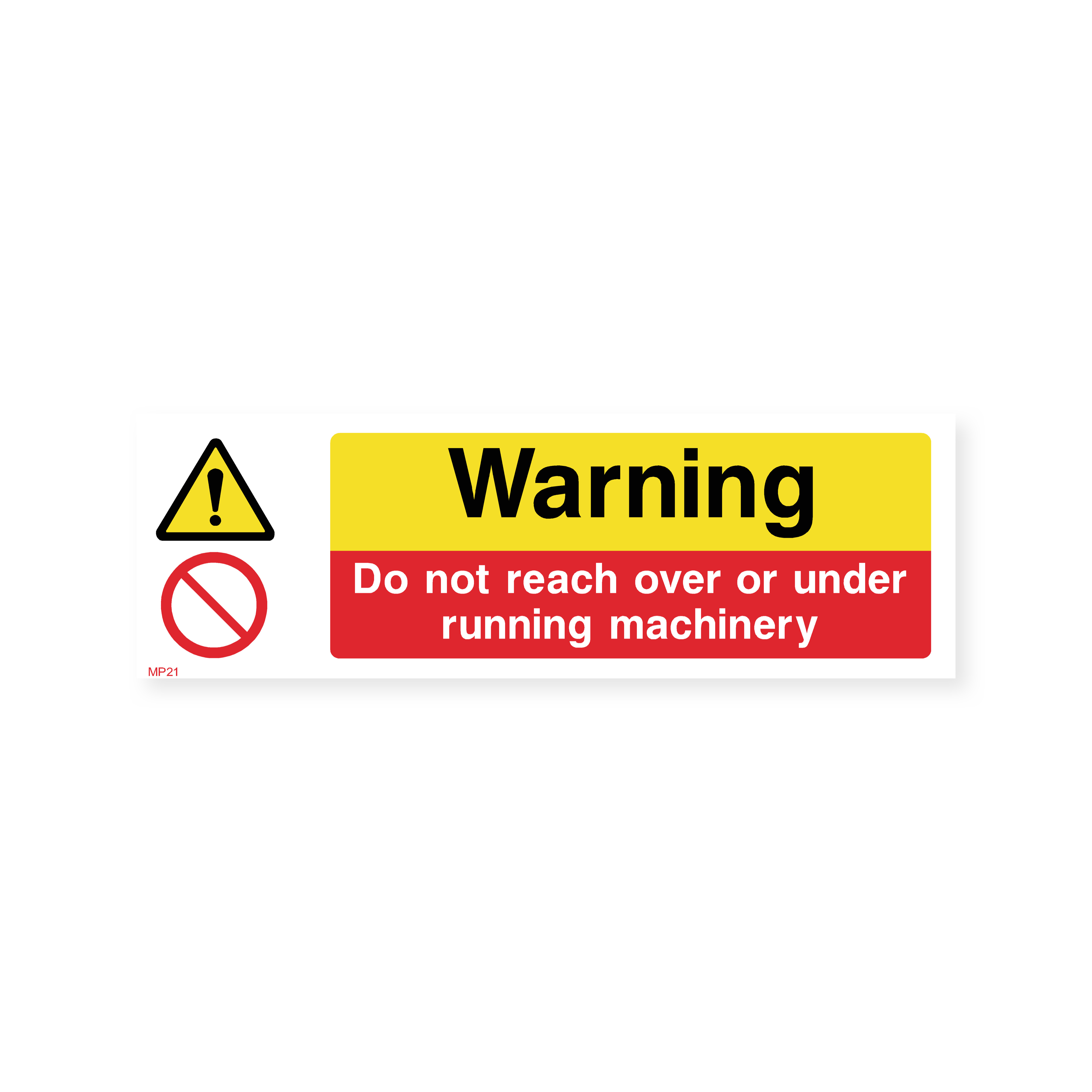 Our "Do Not Reach Over or Under Running Machinery" sign is essential for any workplace with moving machinery. Prevent entanglement and serious injuries by clearly communicating this important safety message. Choose from a variety of sizes to suit your specific needs and ensure a safe working environment.