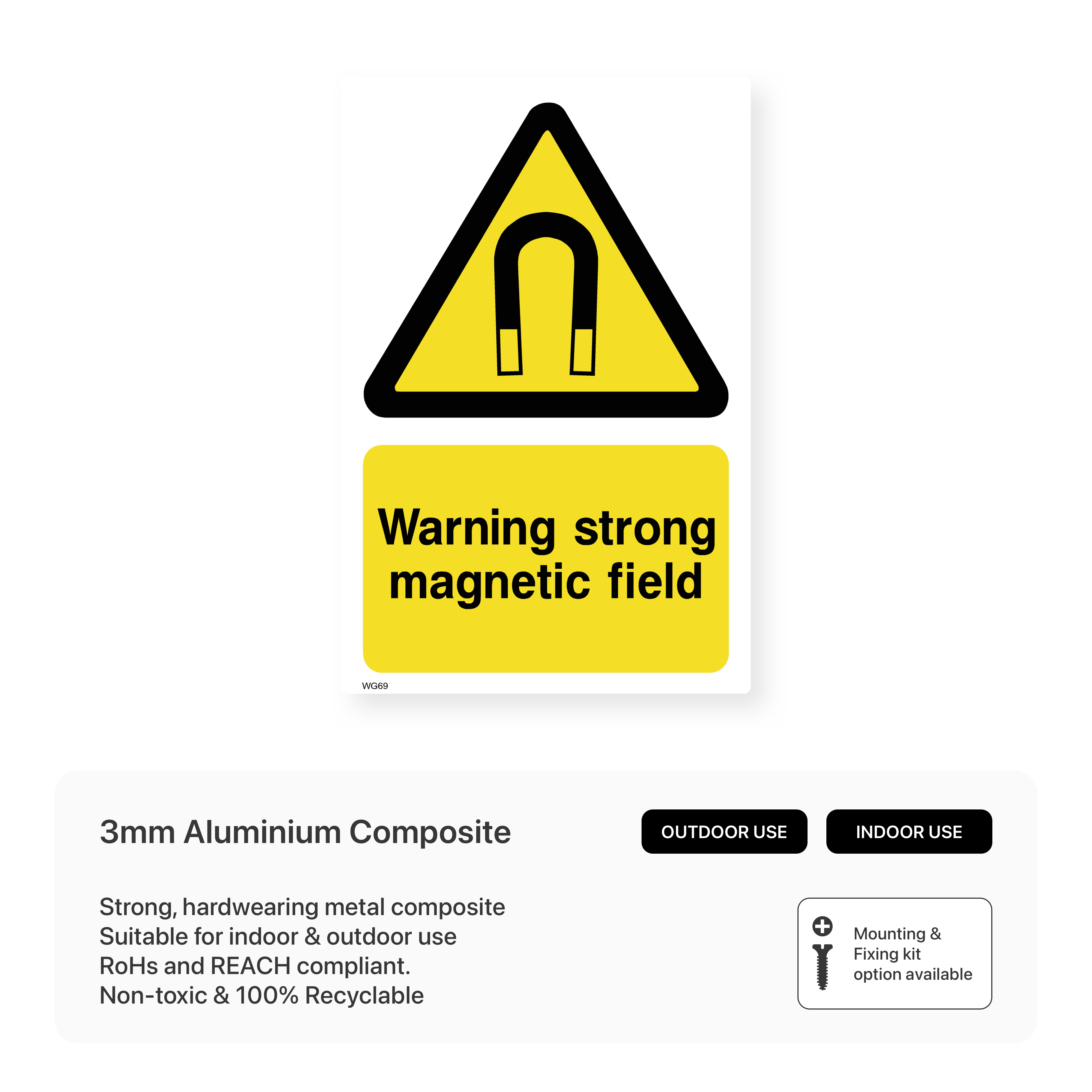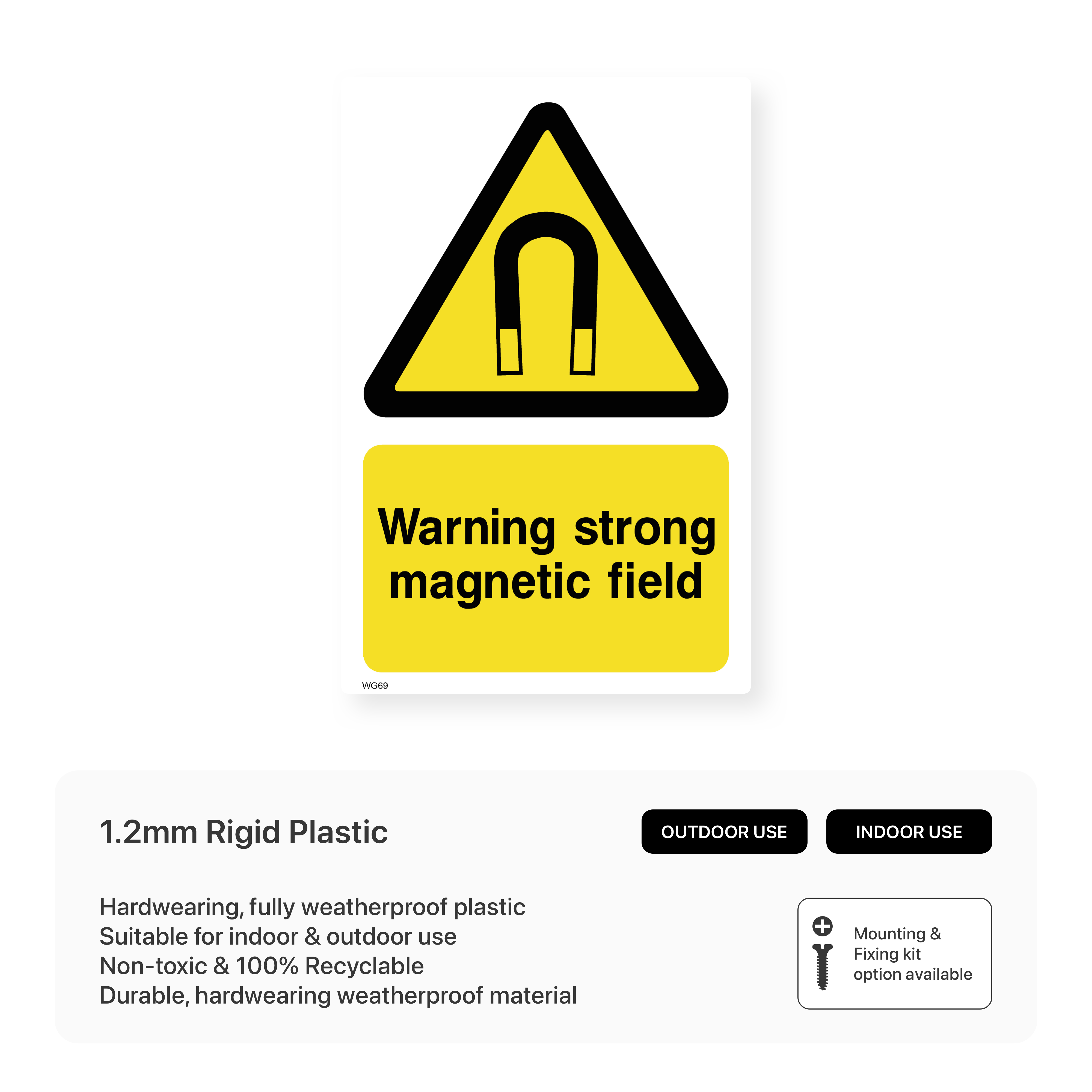 Ensure safety in areas with strong magnetic fields with our "Warning - Strong Magnetic Field" sign. This sign clearly alerts individuals to the potential risks associated with magnetic fields, such as interference with medical devices and electronic equipment.