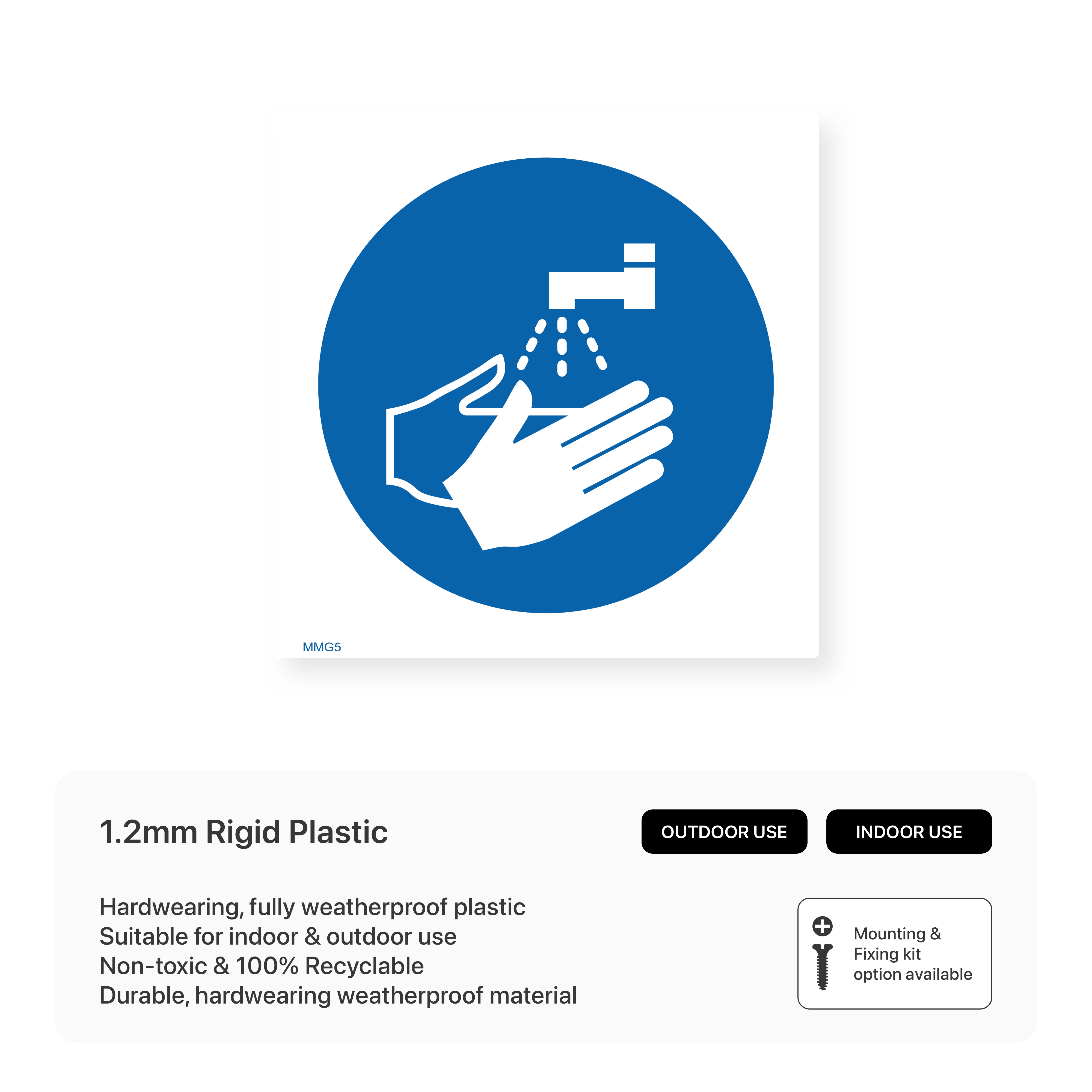 Promote hand hygiene and prevent the spread of germs with our "Wash Hands Symbol" signs. Ideal for restrooms, kitchens, and food handling areas.