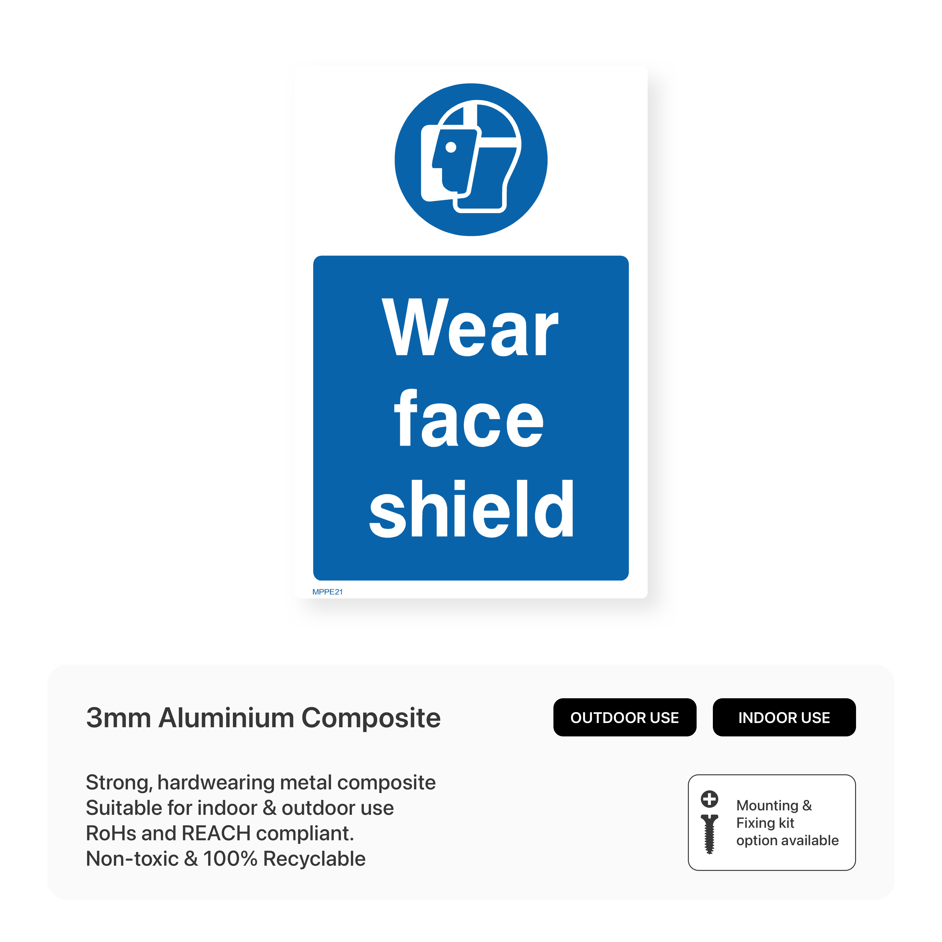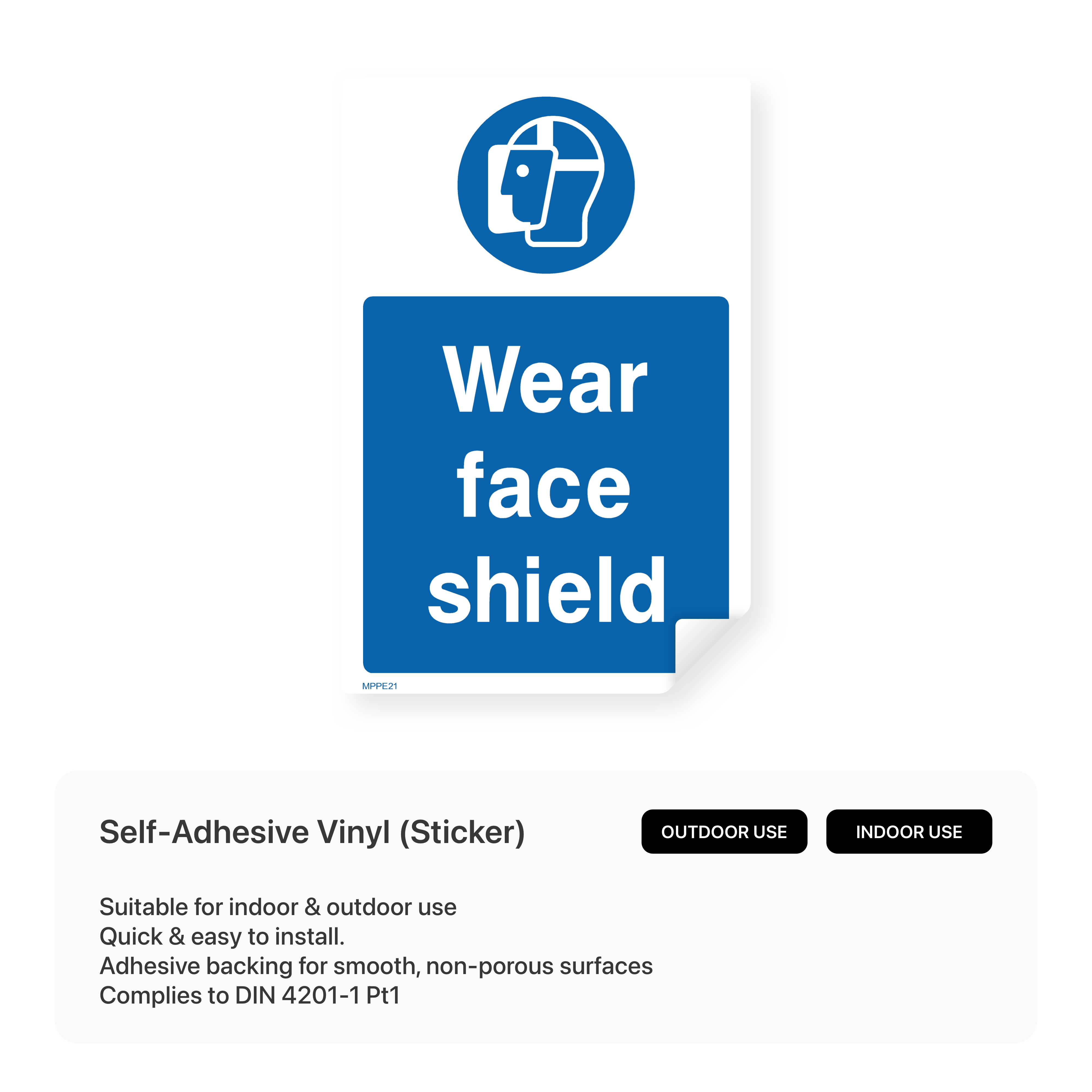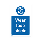 Prioritize face protection and prevent injuries with our "Wear Face Shield" portrait sign. Designed for optimal visibility, this sign clearly communicates the mandatory use of face shields in designated areas. Choose from various sizes and materials to suit your workplace needs and ensure your employees are adequately protected from hazards.