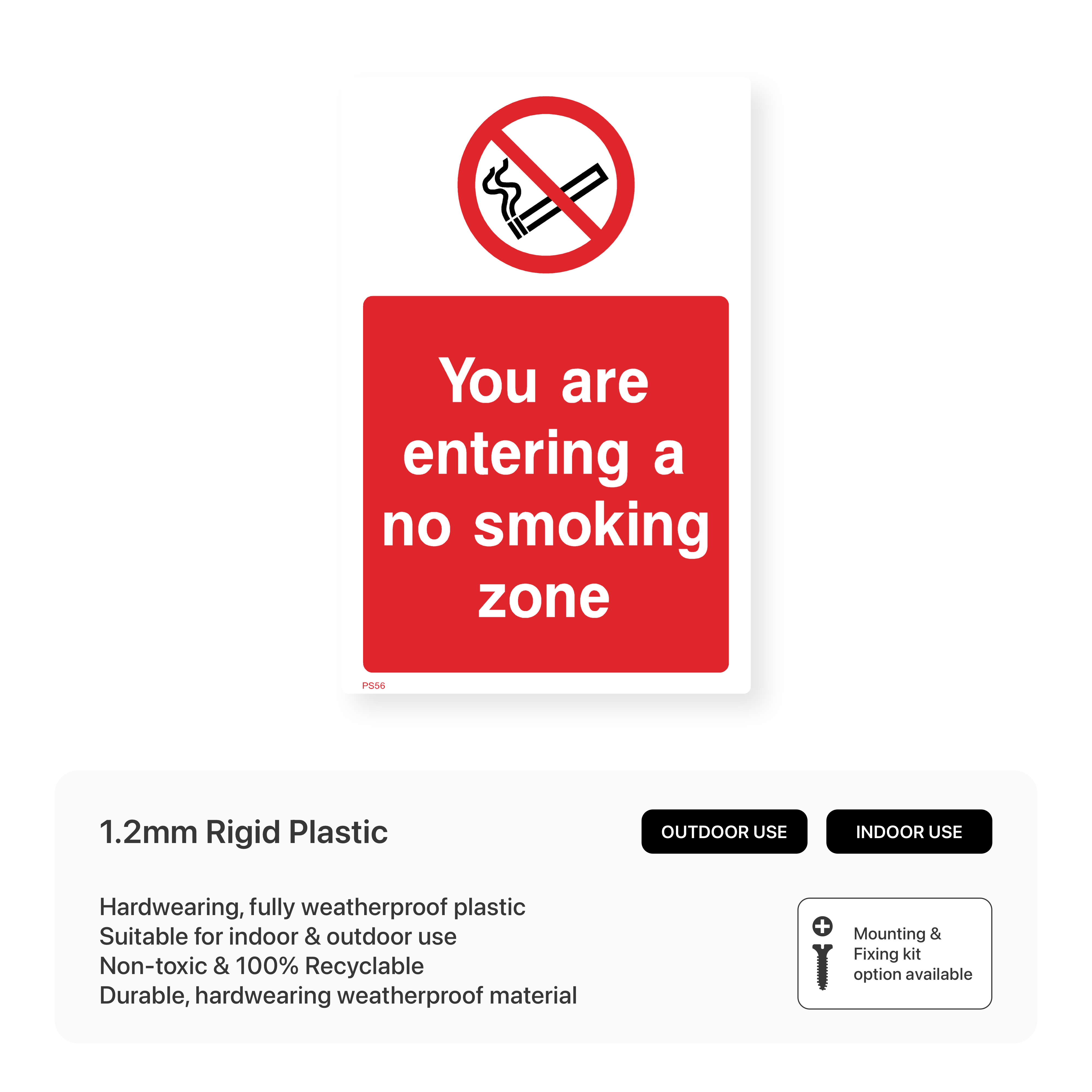 Clearly mark the entrance to a smoke-free zone with this "You Are Entering a No Smoking Zone" sign. This sign helps prevent smoking in restricted areas and encourages smokers to be mindful of others. Maintain a healthy and compliant environment with this informative sign.